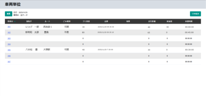 収集履歴やドライバーが入力した作業実績などをデジタルデータとして蓄積・出力が可能です。これらのデータを活用することで、実績に基づく配車計画や車両メンテナンス計画の策定、安全教育への展開が可能です。