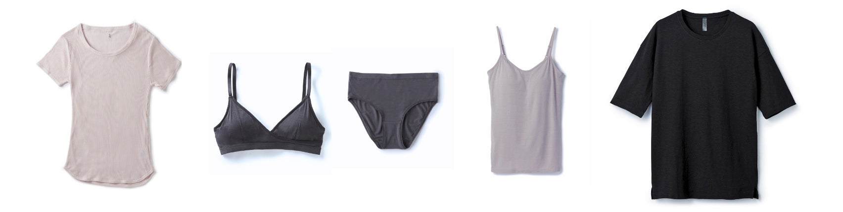 ECサイトでは、ブランド創設以来の⼈気商品ベア天ソフトブラをはじめ、ショーツ、カップ付きトップス、Tシャツ、パジャマなど下着からルームウェア、ワンマイルウェアを展開。インナーウェアを単なる「下着」ではなく、ファッションの⼀つとしてお楽しみいただけるアイテムを取り揃えています。