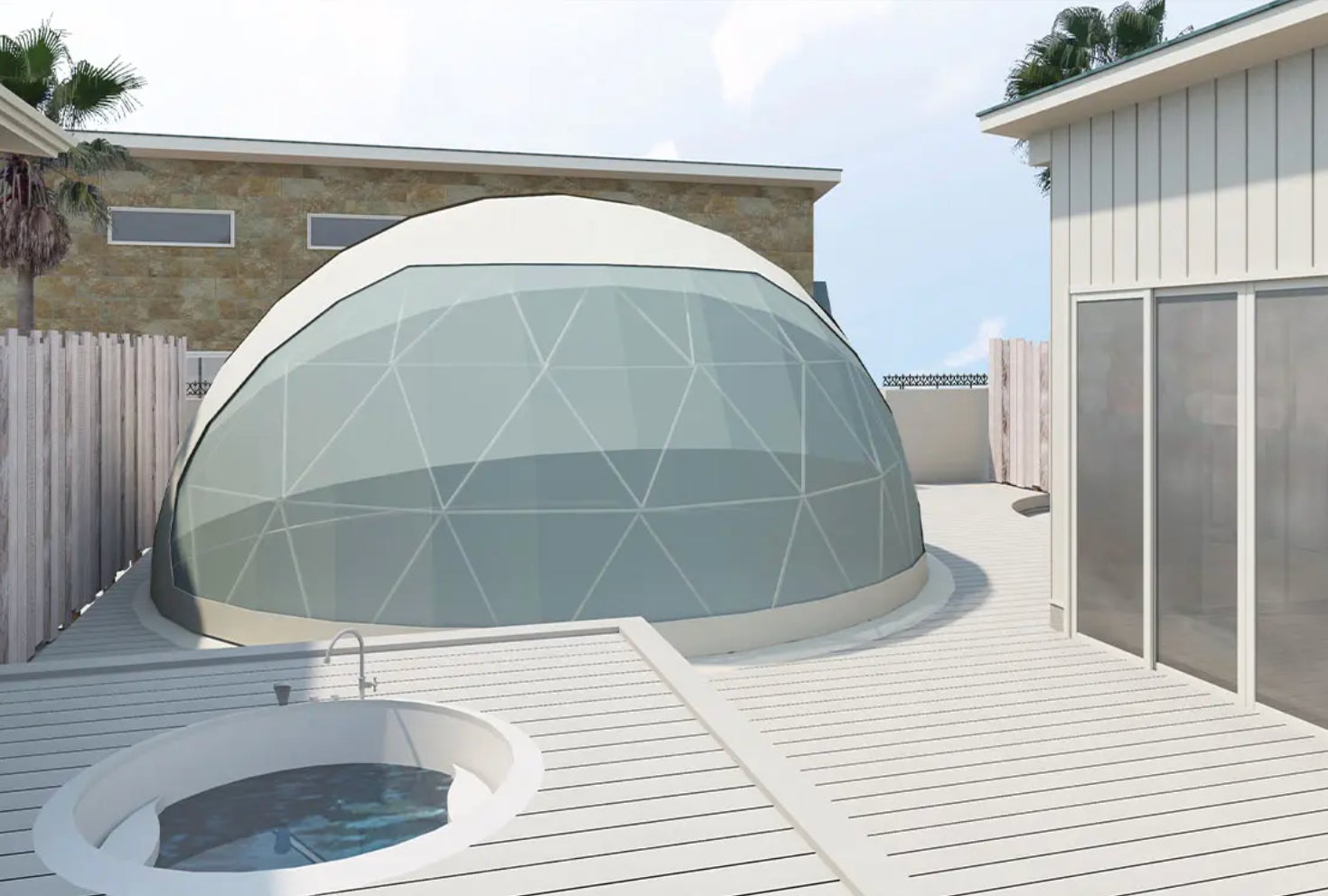 「波音をBGMに、星降る夜のゆったりバスタイム」プライベートバス付ドームテントでは、海や星を眺めながらオープンエアのジャグジーに浸かる贅沢な体験ができます。