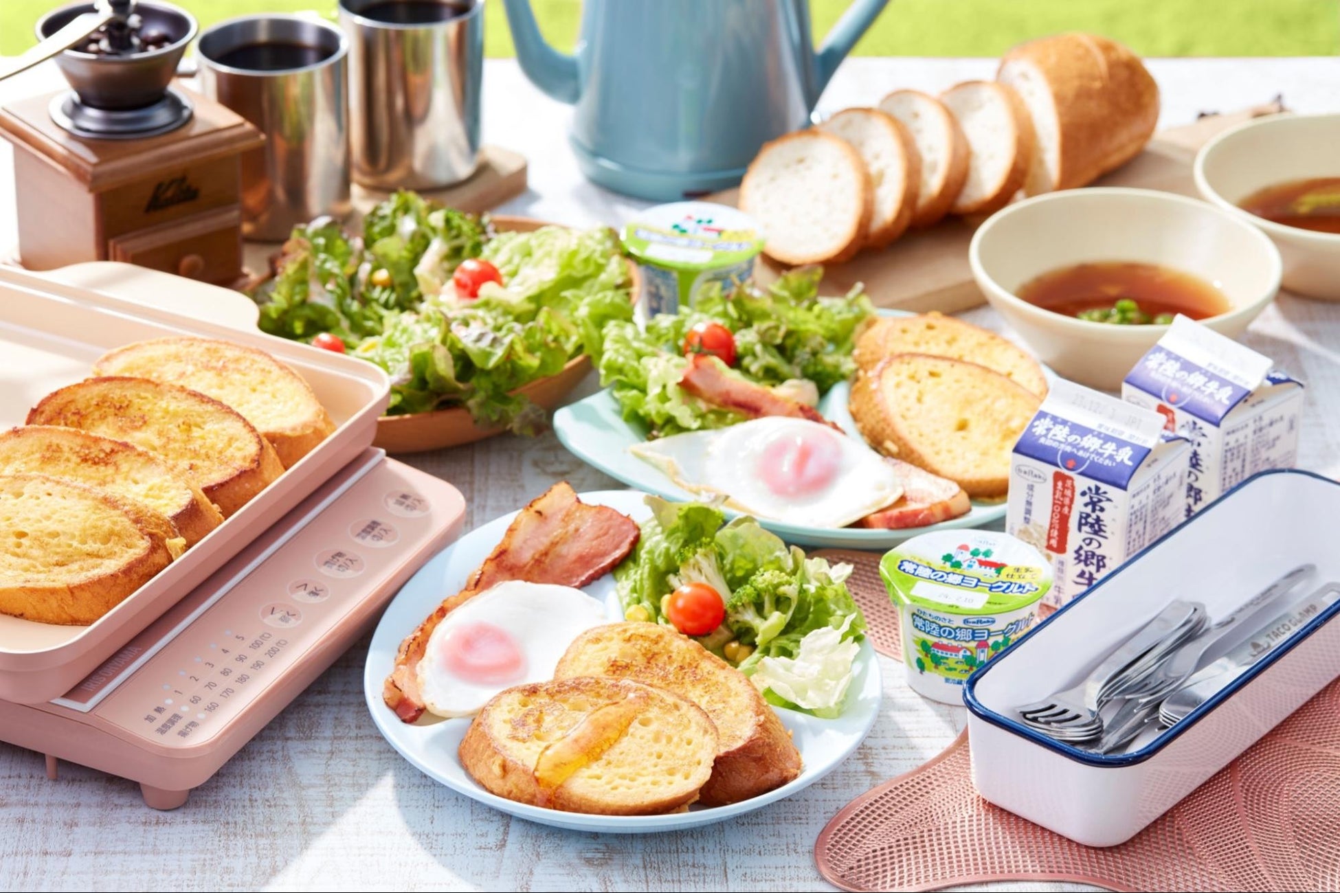 お食事は各宿泊テントに隣接したBBQハウスで楽しむことができます。本格ガスグリルはBBQの本場アメリカで広く普及しているWEBERを導入しています。夕食は「茨城県産コシヒカリ」を使用したキーマカレーのメニュー、朝食は「東京ラスクのラスクパン」を使用したフレンチトーストに、茨城産の牛乳やヨーグルトで、贅沢な癒しのひと時を楽しめます。