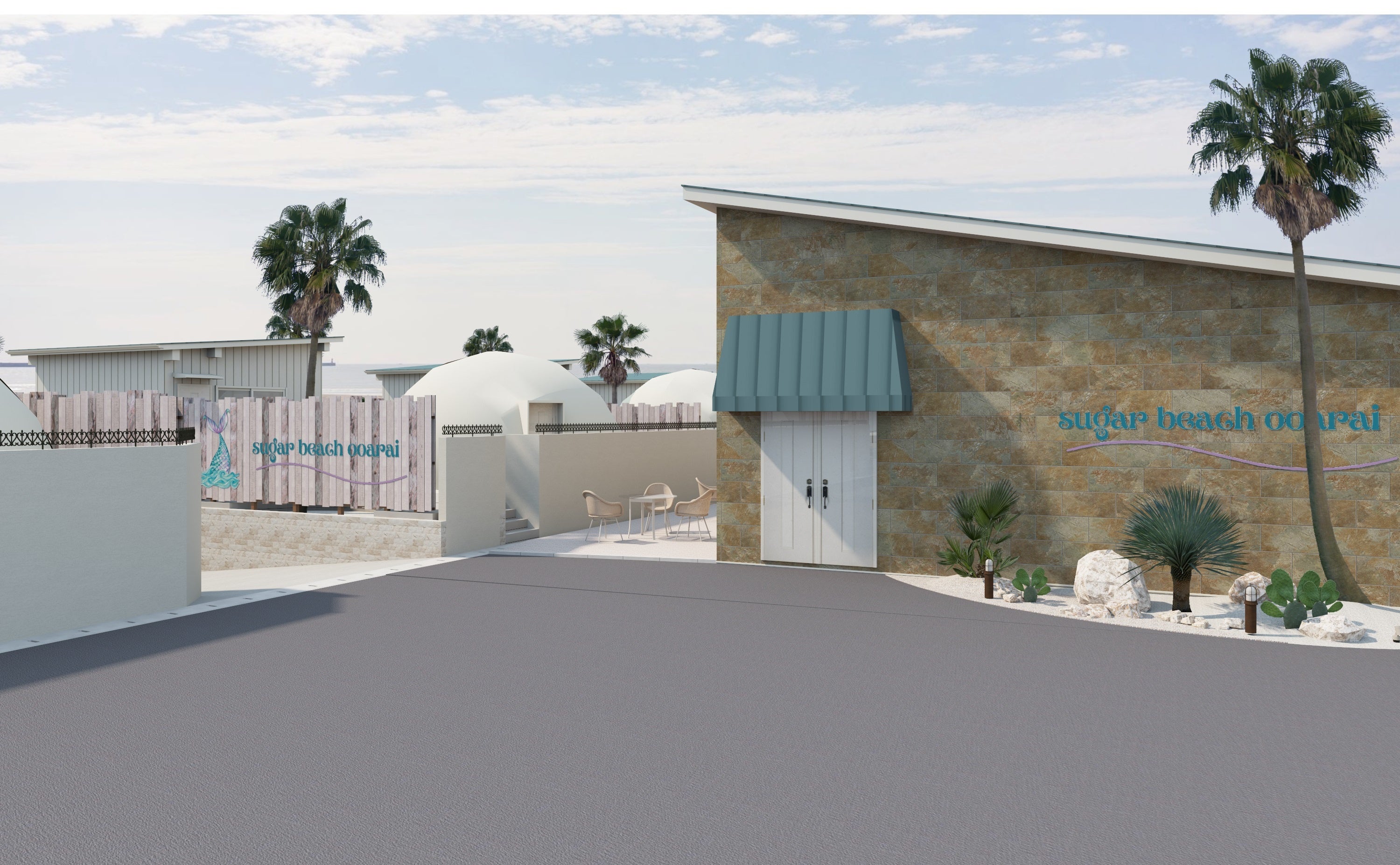 大洗町に新しい人流を創ると同時に、「心地よい自分でいられる場所」をコンセプトに、非日常的な癒しの空間を目指します。
