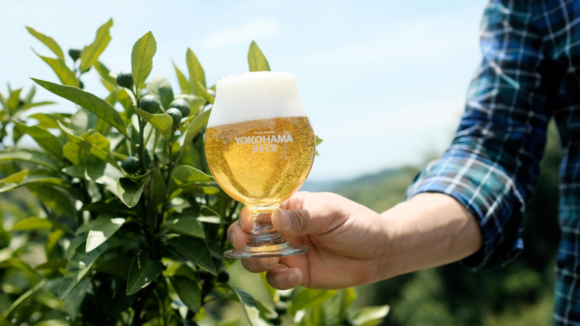 そこで、私達「横浜ビール」は、貴重な資源を活かす取り組みとして、小田原の「あきさわ園」と協力し、青みかんのフレッシュな酸味の果汁と、心地よい柑橘の香りに包まれたビールを造りました!