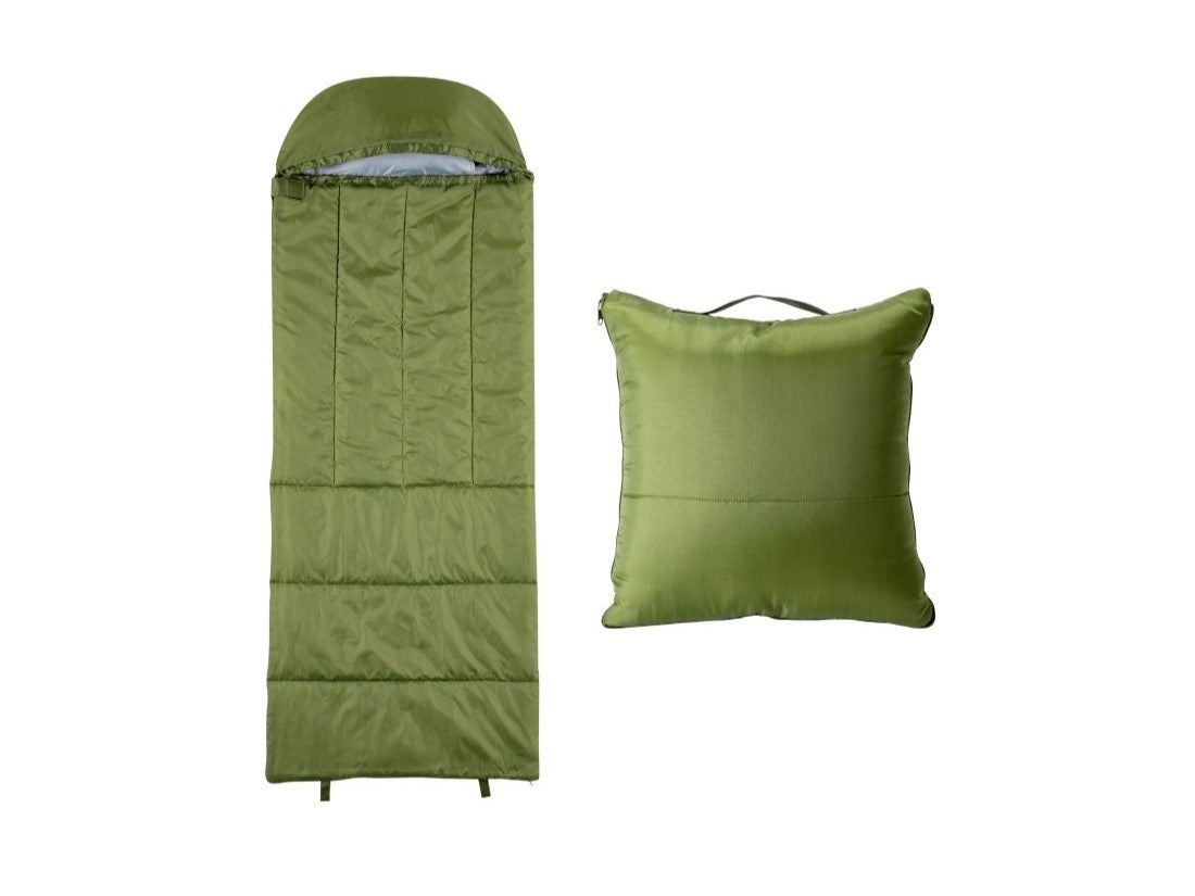 クッションが寝袋に変身!防災のプロが本気で考え抜いた寝袋クッション。ふかふか枕付き。
