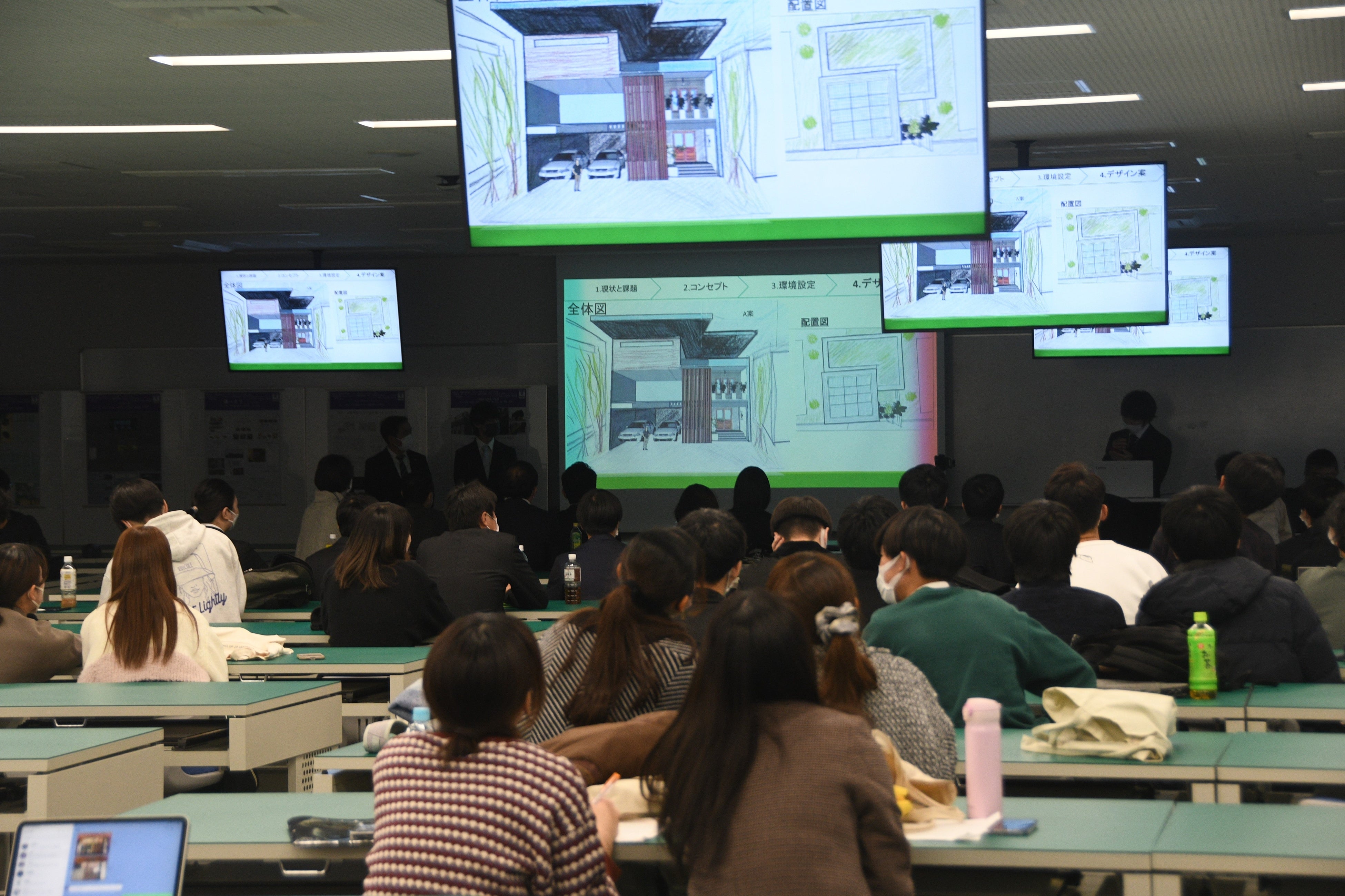 条件を自由な設定とする事で、住宅の配置と公園とを結び付けるアイディアや、暮らしやすさを考え抜き行政からの優遇まで考慮したアイディアなど、学生ならではの自由な発想を駆使し、各自「自分の住みたい家」を表現して頂けたのではないかと思います。
