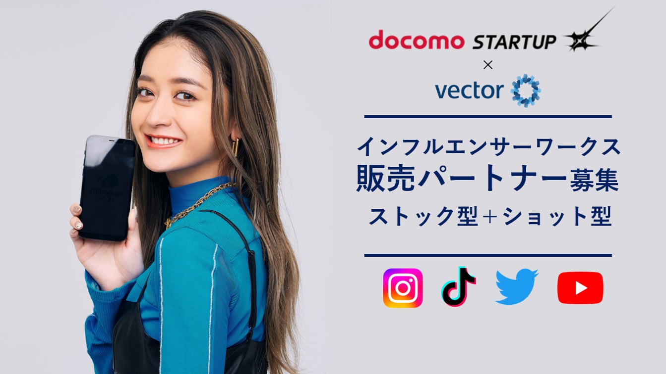 株式会社ベクトル(本社:東京都港区、代表取締役会長兼社長:西江肇司、東証プライム:6058、以下ベクトル)の子会社である株式会社INFLUENCER BANK(代表取締役:秋保 潤、以下INFLUENCER BANK)が株式会社NTTドコモ(東京都千代田区、代表取締役社長:井伊基之、以下NTTドコモ)の新規事業創出プログラム「docomo STARTUP™*」と共同事業として運営する月額型インフルエンサーマッチングプラットフォーム「インフルエンサーワークス」の販売パートナーを30社限定で募集いたします。