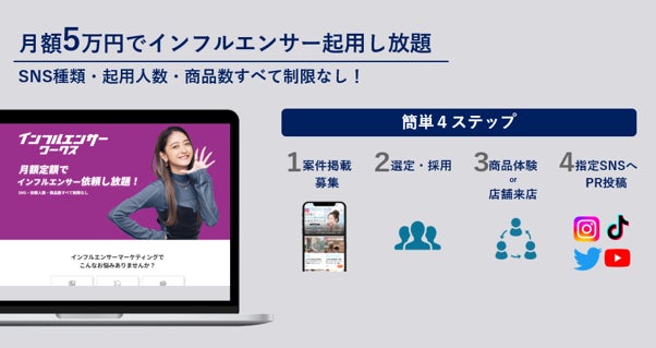 月額5万円からインフルエンサー起用し放題のサービス特性上、費用対効果の高いマーケティング施策として評価されており、売上は前年比500%のペースで急成長しています。
