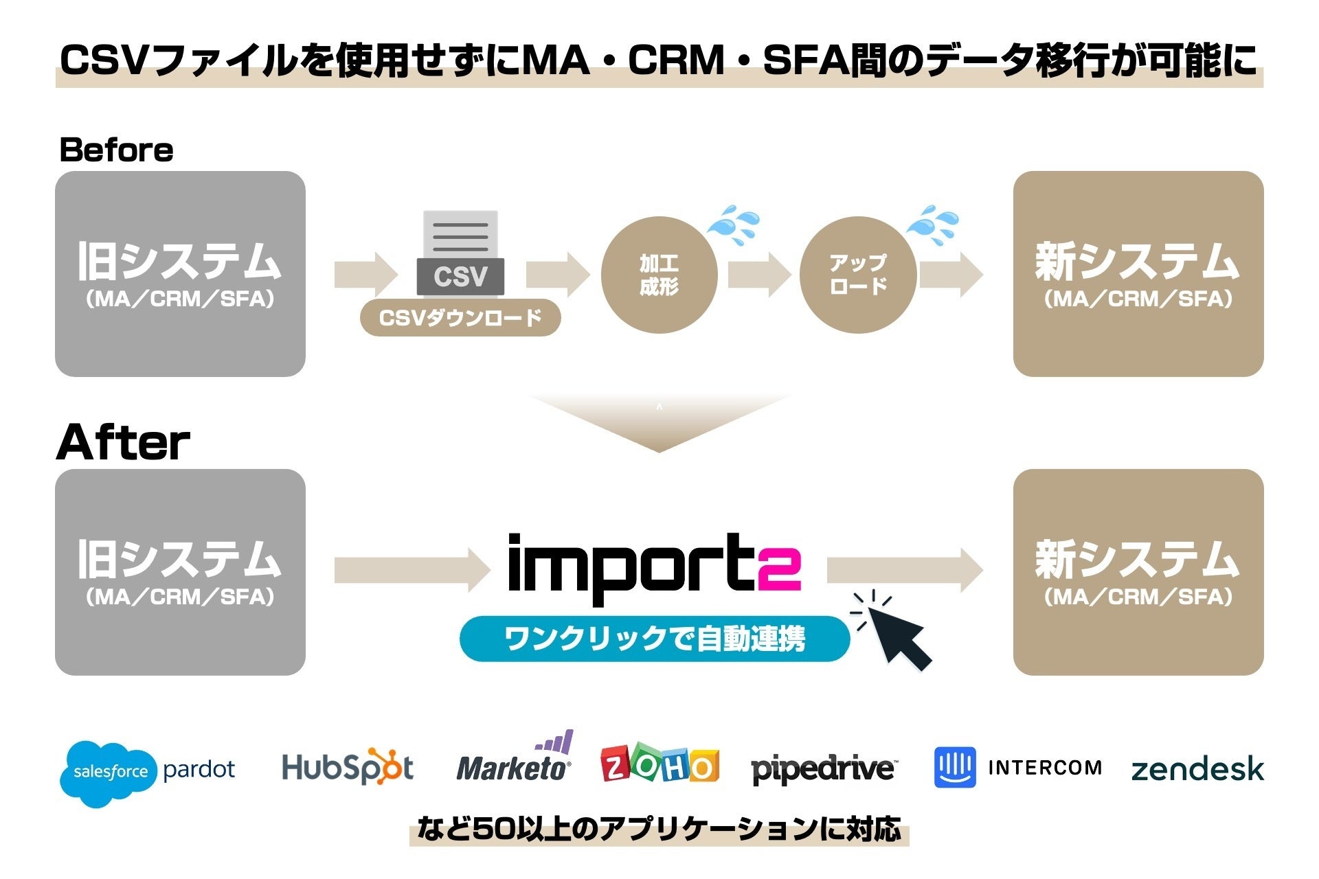 営業DX・B2Bマーケ支援の㈱FLUED、米国IMPORT2社のCRMデータ移行ツール取扱開始 ~CSVファイルを使用せずにMA・CRM・SFA間のデータ移行が可能に~