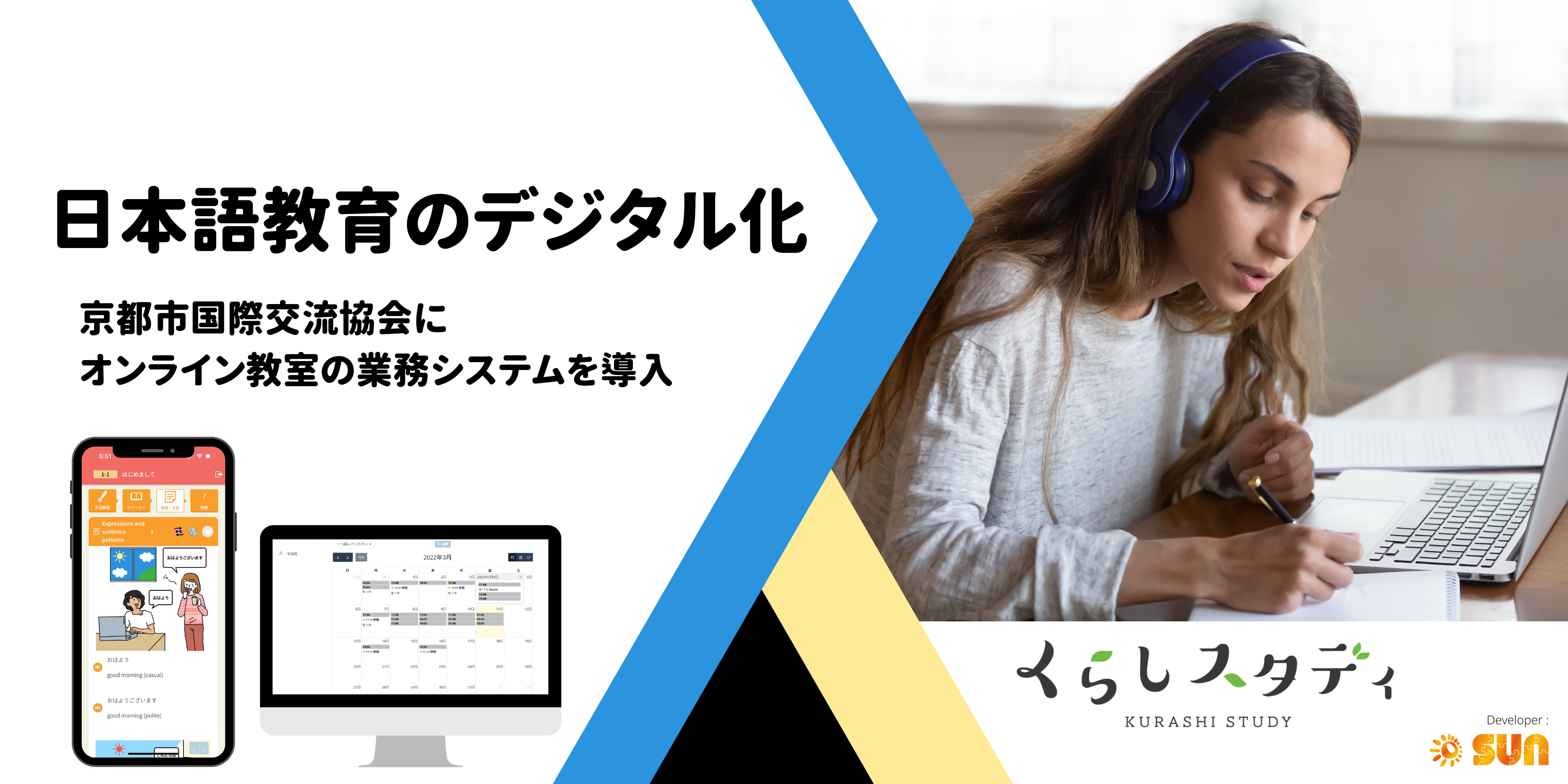 京都市国際交流協会では、日本語学習アプリ「くらしスタディ」を活用して、オンライン日本語教室の「業務管理システム」を構築し、6月1日(水)より本格運用を開始しました。これにより京都市国際交流協会では、対面で行っていた授業や、受講に必要な窓口の手続きをオンライン化し、利用者(在留外国人)が時間や場所を問わずにオンラインでサービスを受けられる環境を整備することができました。