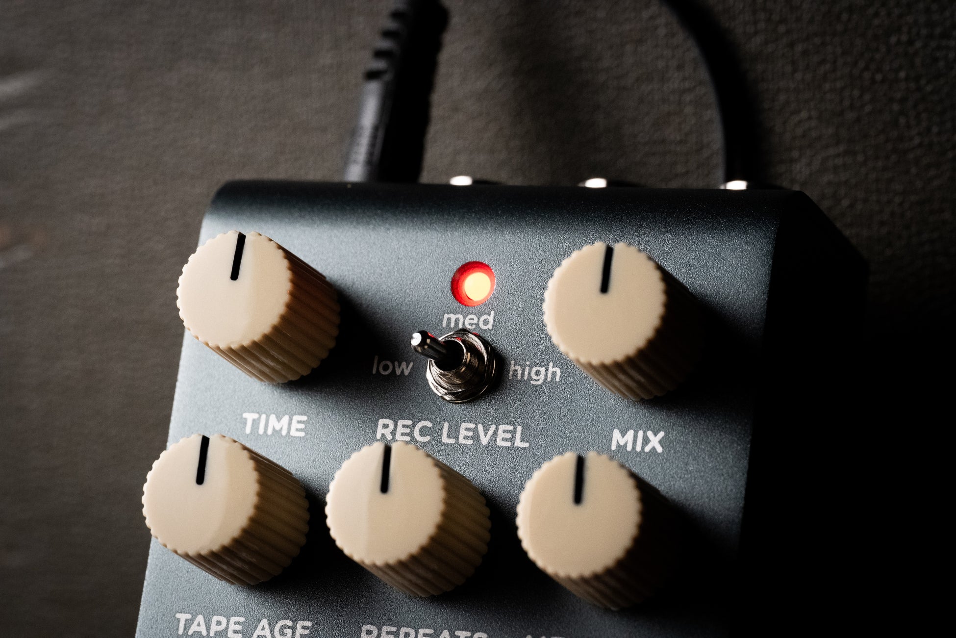 ユニティゲインの low ポジションを選択すると、バイアスが最適化されて最もクリーンなリピートが得られ、medium ポジションではバイアスが増加し入力信号が 6dB ブーストされて、わずかにサチュレートしたリピート音が得られます。High ポジションでは、さらに入力信号が 12dB ブーストされ、バイアスが増加して深くサチュレートしたリピート音が得られます。