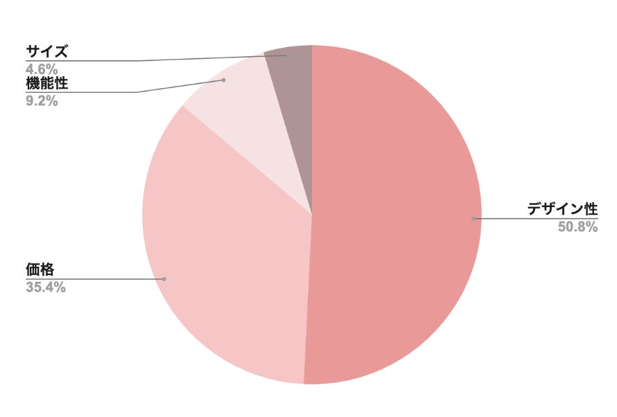 続いて、「子ども服を買う時に重要視するポイント」を調査したところ『デザイン性(50.8%)』と回答した方の割合が最も多く、次いで『価格(35.4%)』、『機能性(9.2%)』、『サイズ(4.6%)』と続きました。