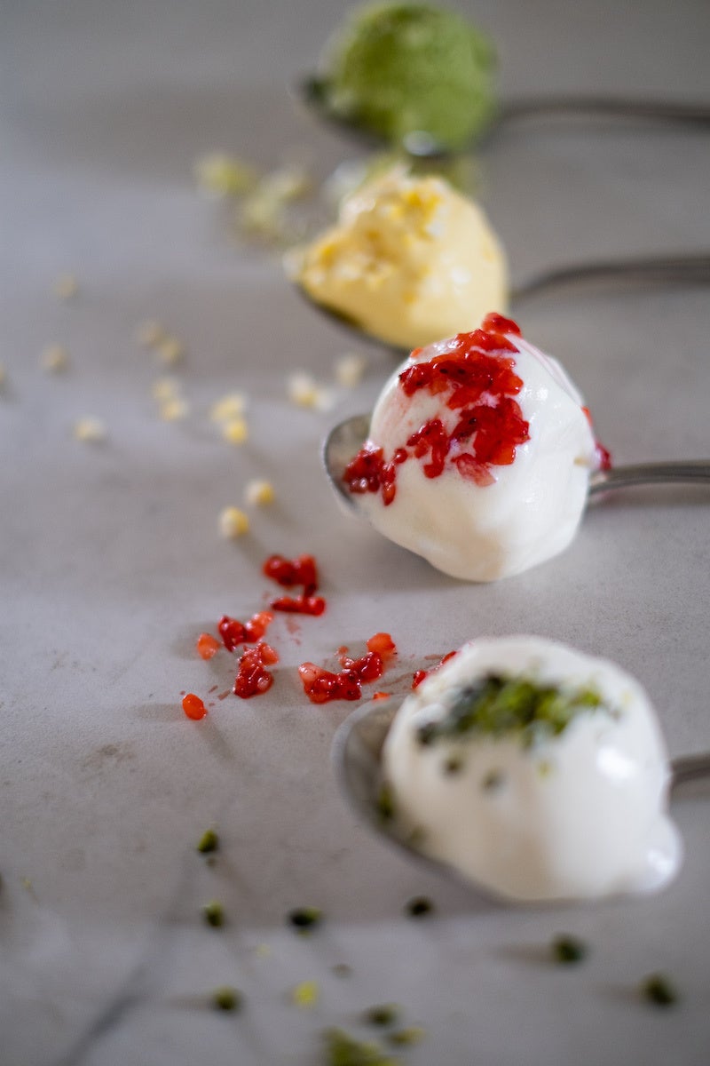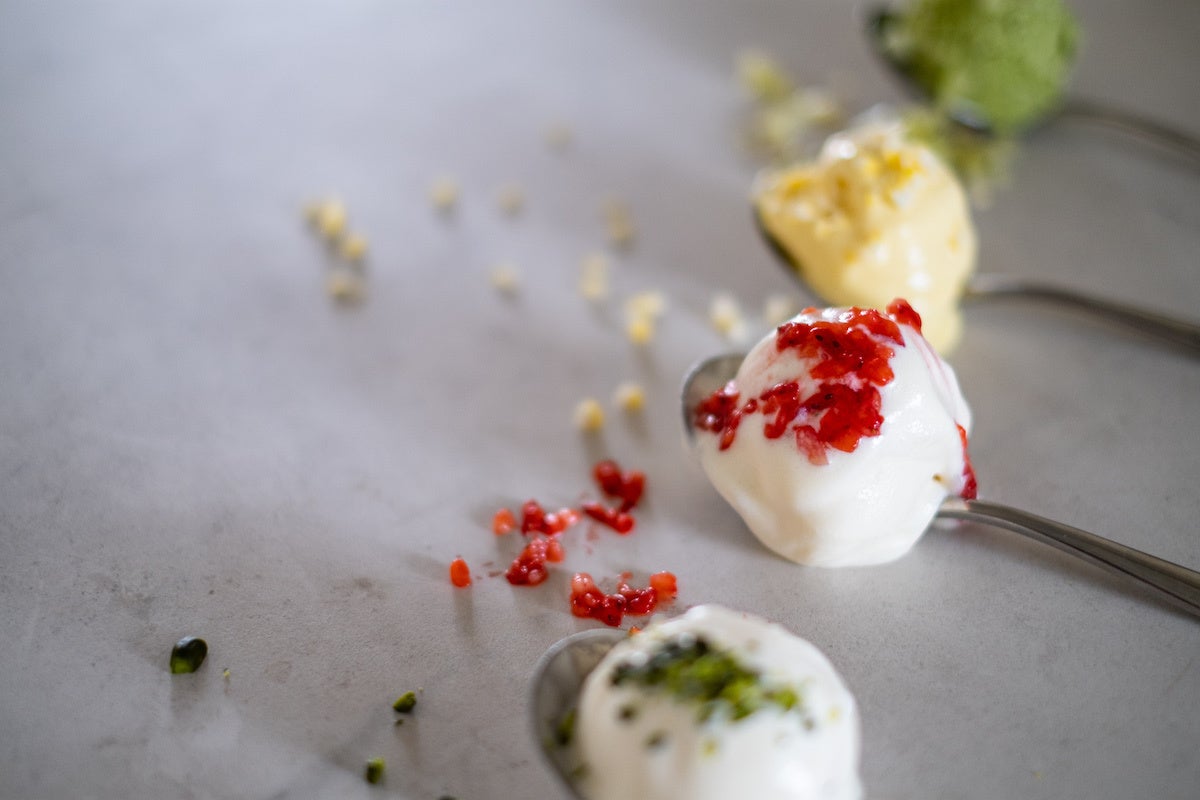 季節の野菜や果物を使用した、渋谷店限定のアイスクリームが登場。冷凍した果物をその場で砕いてアイスクリームと混ぜ合わせるため、新鮮な農産物の味を楽しめるのが特徴です。