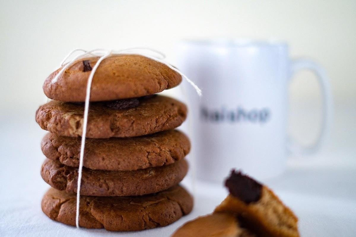 動物性の素材を一切使わずに仕上げた、シェフお手製のヴィーガンクッキーです。国産小麦粉と米油、豆乳を使用し、しっとりとした食感に仕上げています。味はバニラ、ジンジャー、チョコチップの3種です。チョコチップは児童労働の禁止や生産者の安全な労働環境と正当な対価を保証する、フェアトレードのダークチョコレートを使用。ジンジャーは千葉県産の生姜を皮ごと使用し、食品ロス削減にもつなげています。