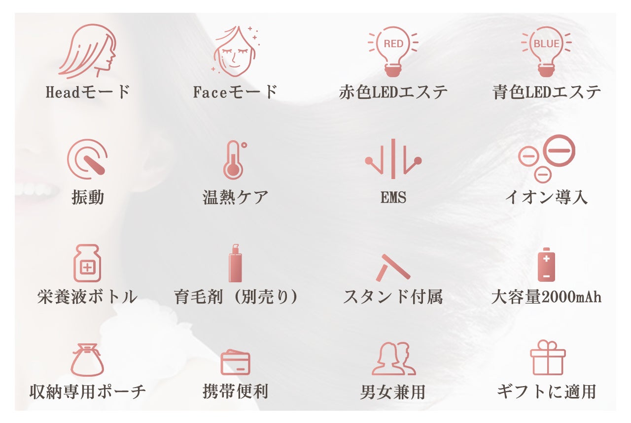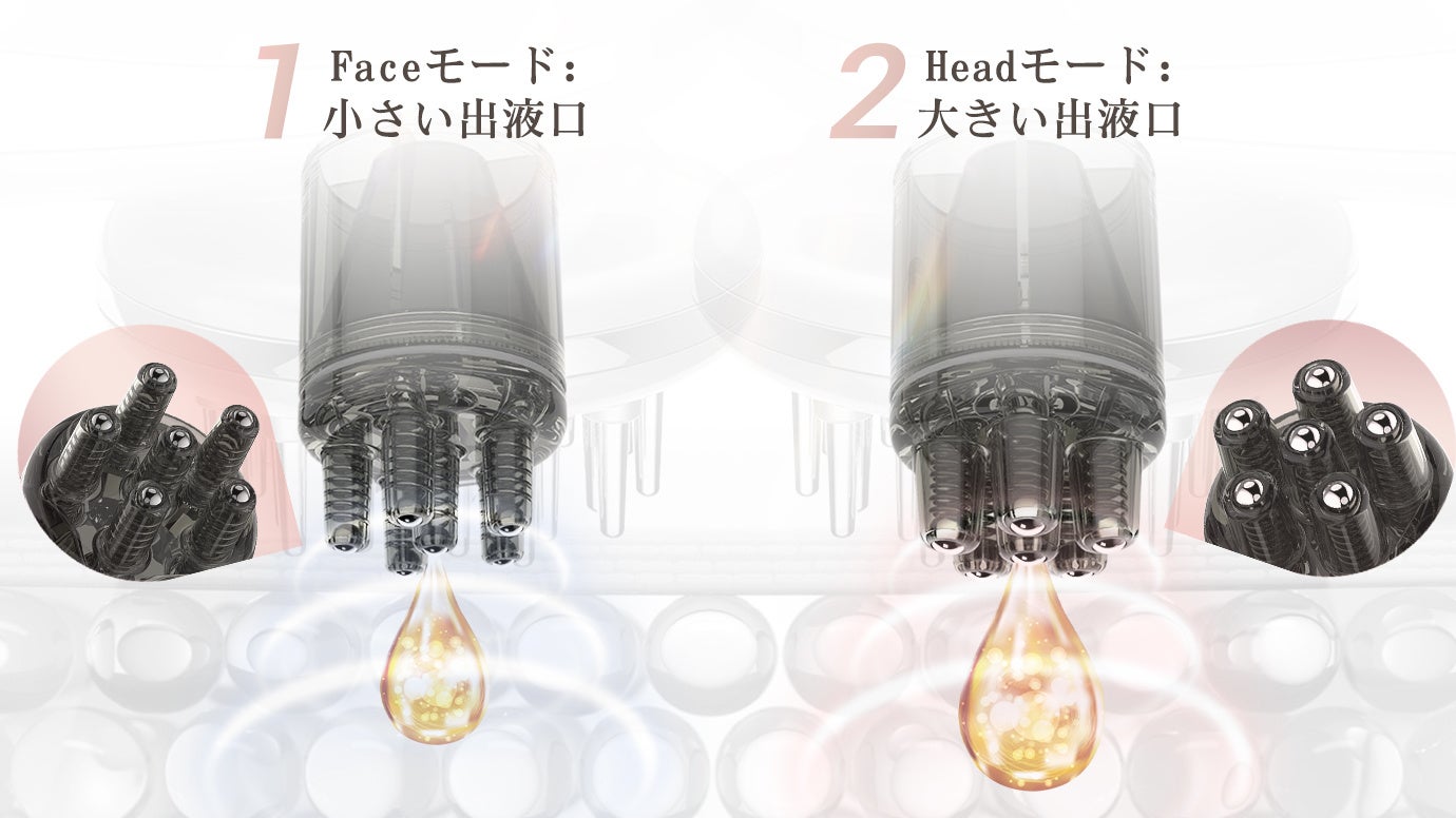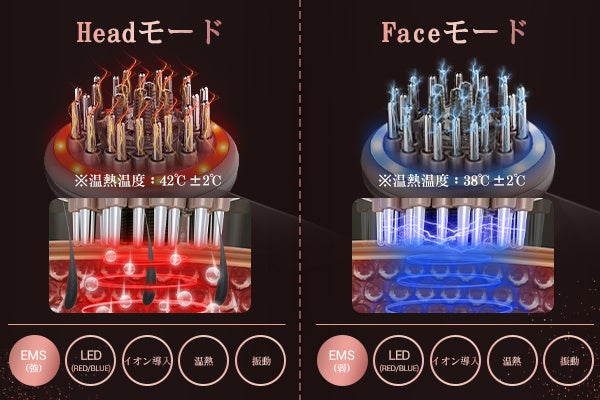 | 【家庭用美顔器として、美顔・美髪へ2in1 リリースブラシ】フェイスモードとヘッドモードを搭載!2つのモードを自由に切り替えて使える! |