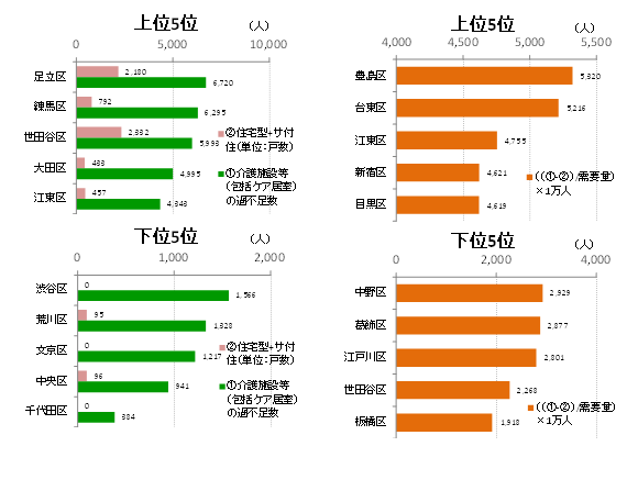 特別区は、供給量に住宅型とサ付住を加えてもいずれの自治体も不足状態にあります(図7)。
