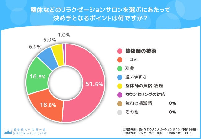 そこで、「整体などのリラクゼーションサロンを選ぶにあたって決め手となるポイントは何ですか?」と質問したところ、