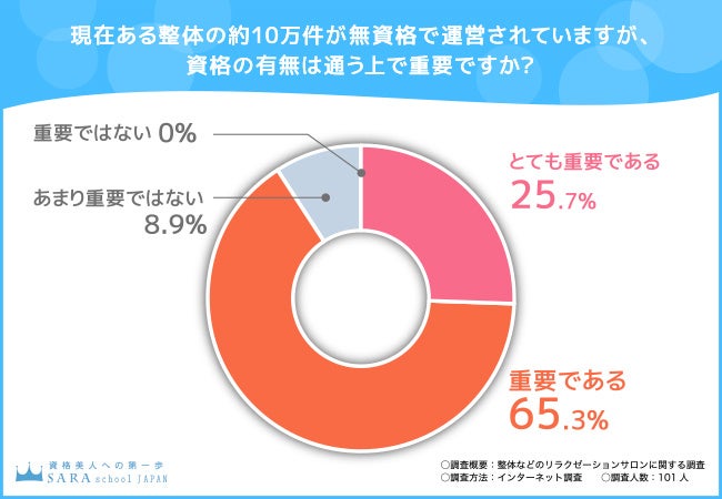 そこで、「現在ある整体の約10万件が無資格で運営されていますが、資格の有無は通う上で重要ですか?」と質問したところ、