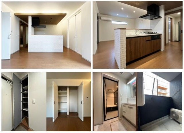 住戸は、木目柄を基調とした温かみのあるカラーコーディネートが施され、間接照明とダウンライトにより落ち着きのある空間を演出。各戸には専用バルコニーが設けられ、プライベート性と快適性を両立しています。