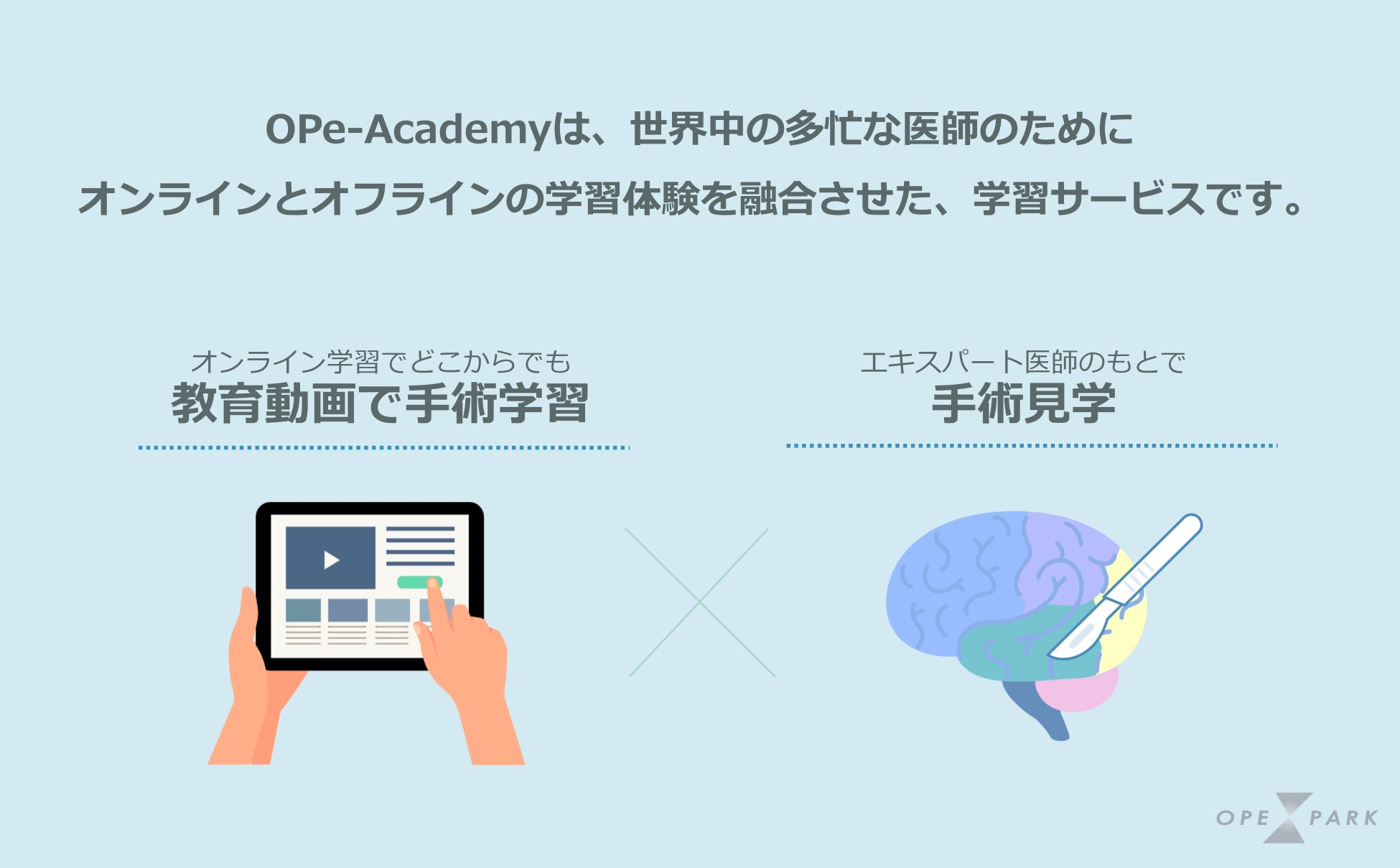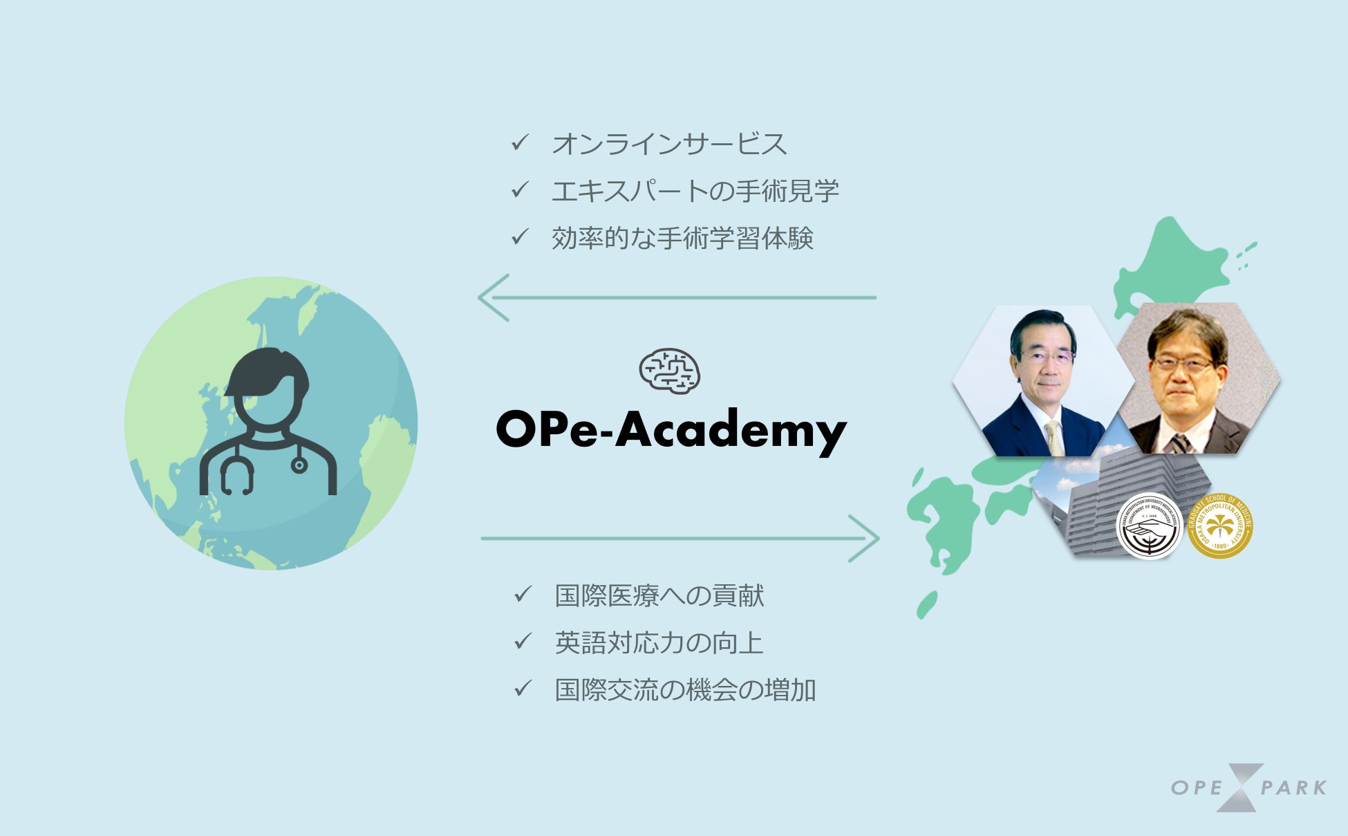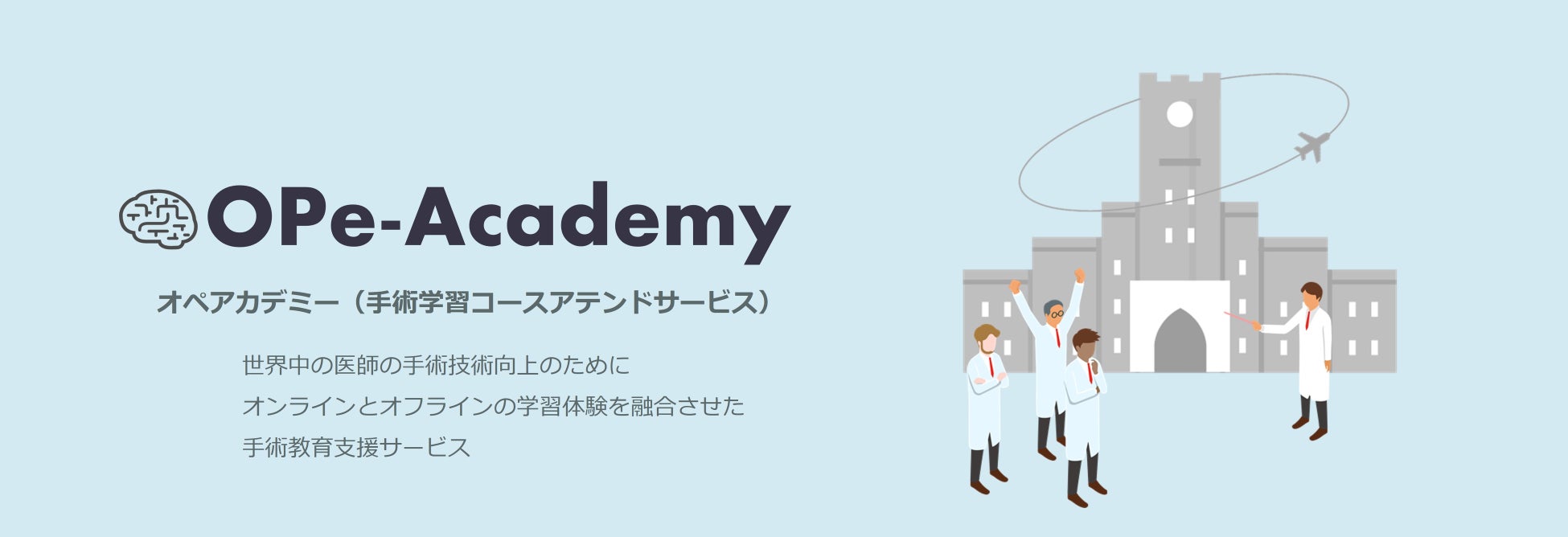 このような背景を受け、OPExPARKではオンラインによる教育支援を織り交ぜた短期の手術見学コースアテンドサービス「OPe-Academy」の提供を開始いたしました。