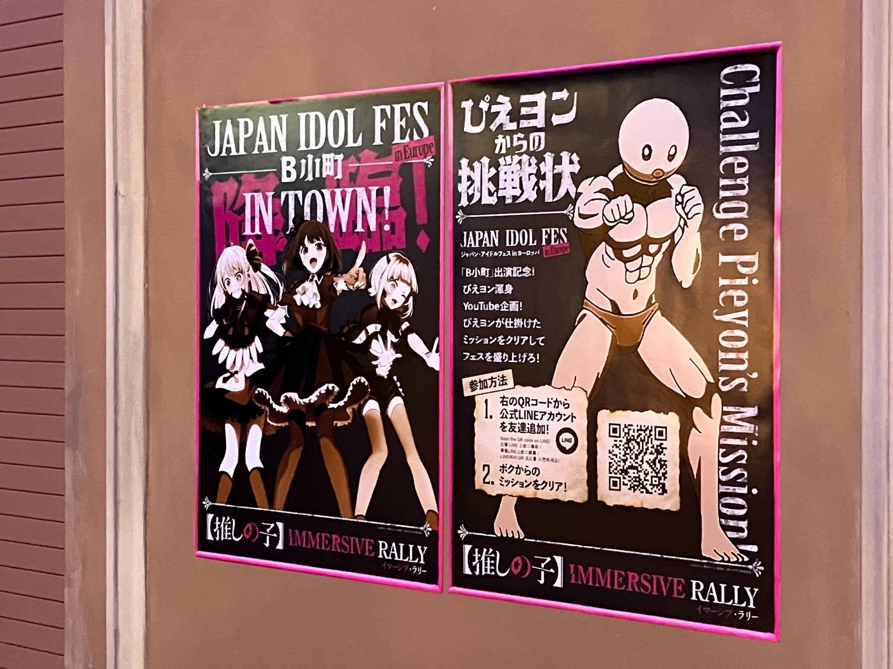 舞台となるのは、とあるヨーロッパの街。B小町の海外ライブを成功させるため、はるばる応援に駆けつけたファンのあなたは、イマーシブ・フォート東京の広大なエリアをめぐりながら、大人気YouTuberぴえヨンがしかける謎解き企画に挑戦。B小町のメンバーたちとやりとりしながら、すべての謎を解き明かしたら、サイリウムをもって大熱狂のライブに参加するアトラクションです。