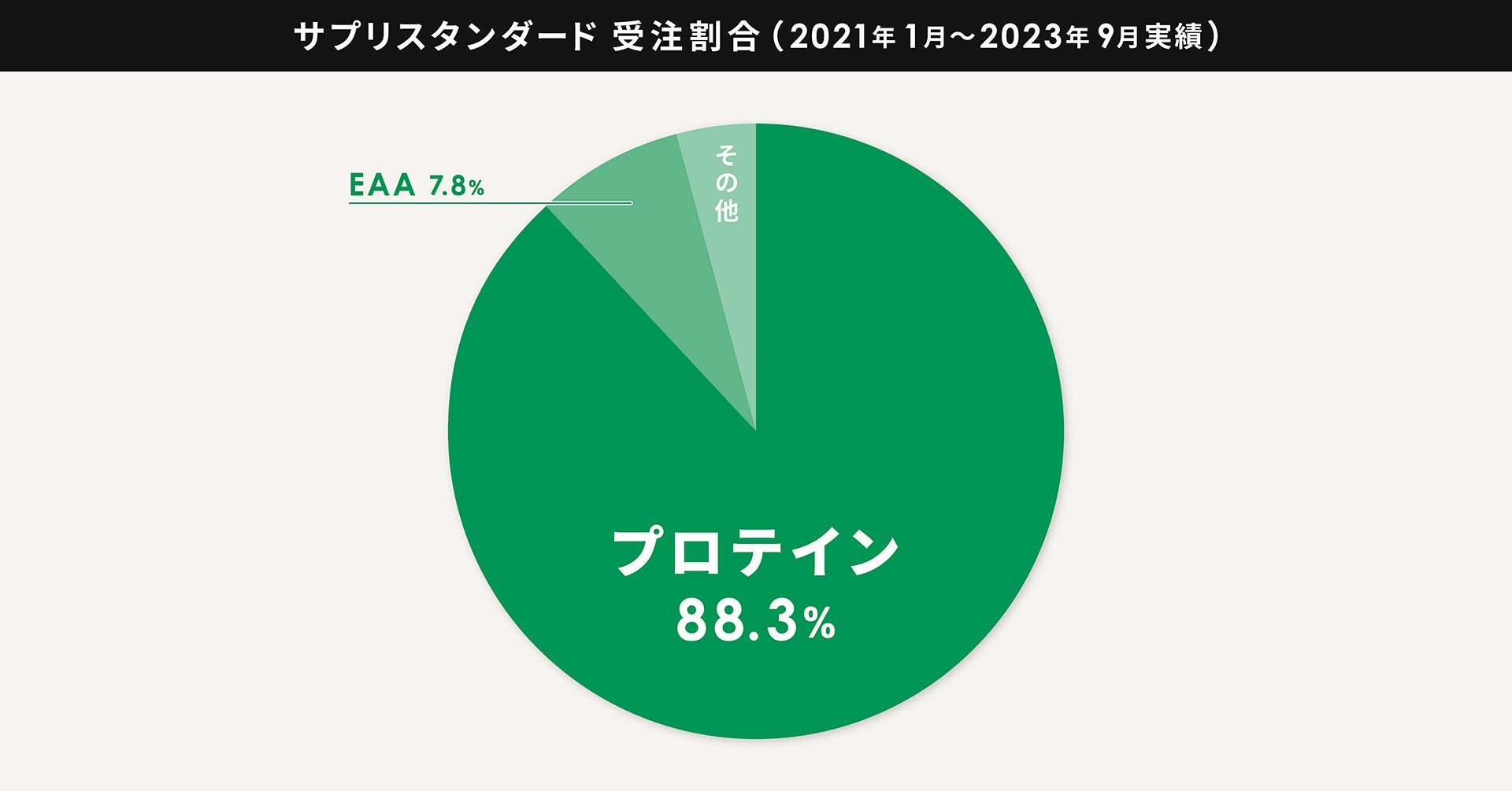 サプリスタンダードの受注実績のうち、9割近くをプロテインが占めています。