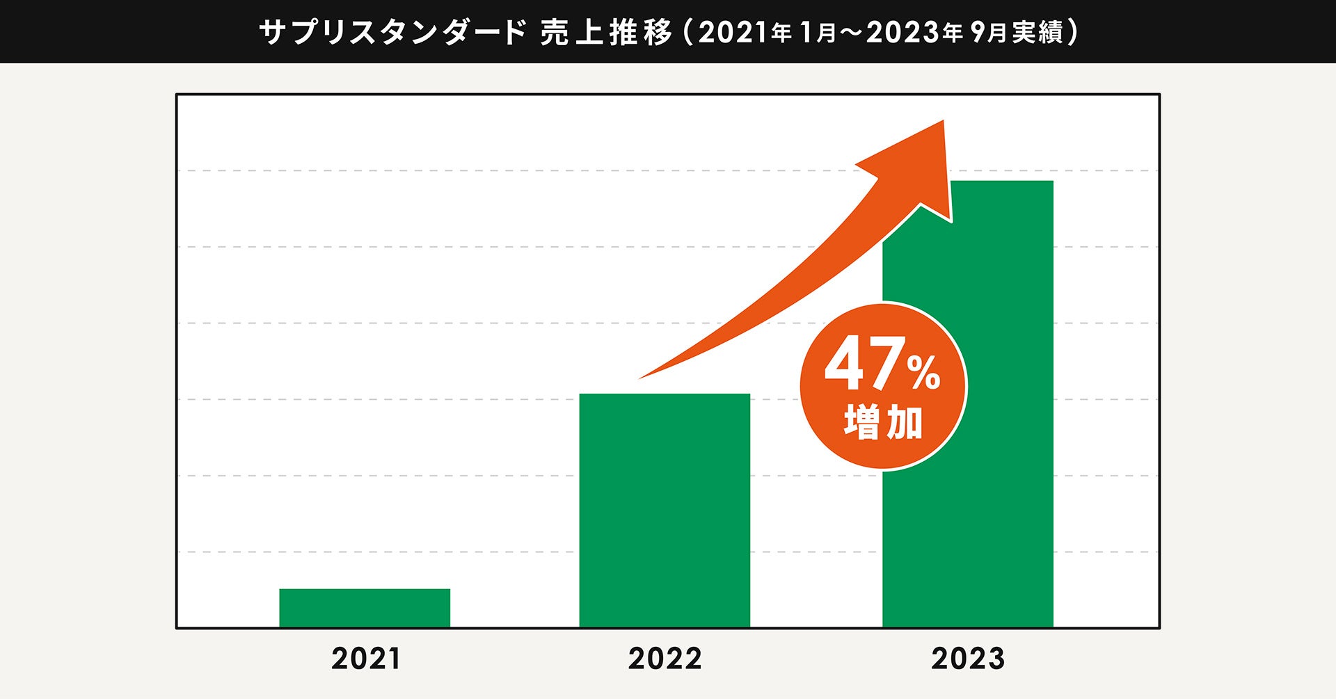 サプリスタンダードにおいては、2023年度は期中ながら9月時点で前年度から約47%売上が拡大しております。