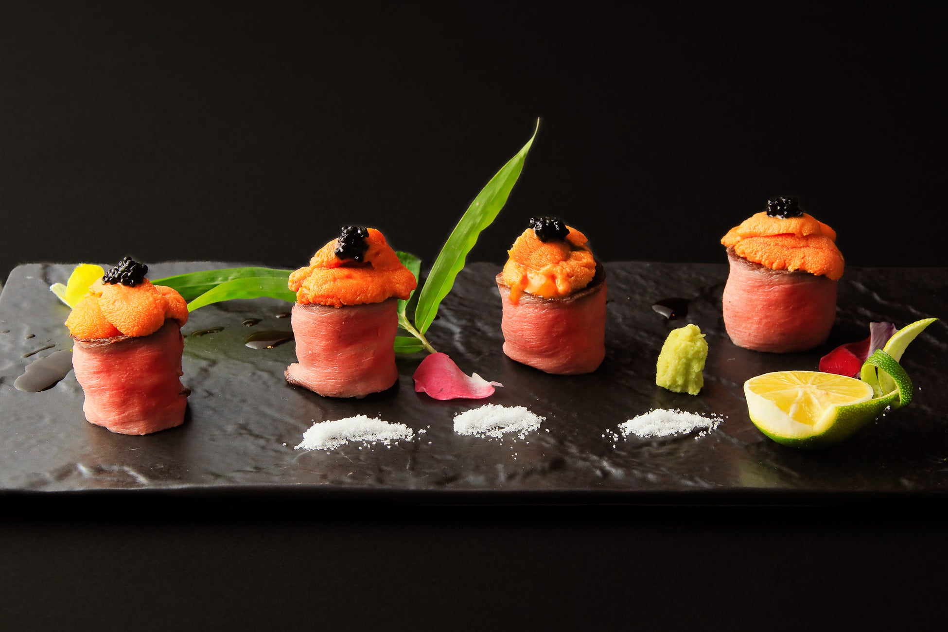リニューアル後はライブキッチンにて静岡県産の素材を生かした鉄板焼きや天ぷらをご提供しております。また、1日3組限定でご予約が可能な「肉尽くし」会席プランを開始。静岡県産のお肉をふんだんに使ったコース内容となっており、中でも鉄板で焼いた牛の三部位を食べ比べることができるステーキは大変ご好評をいただいております。