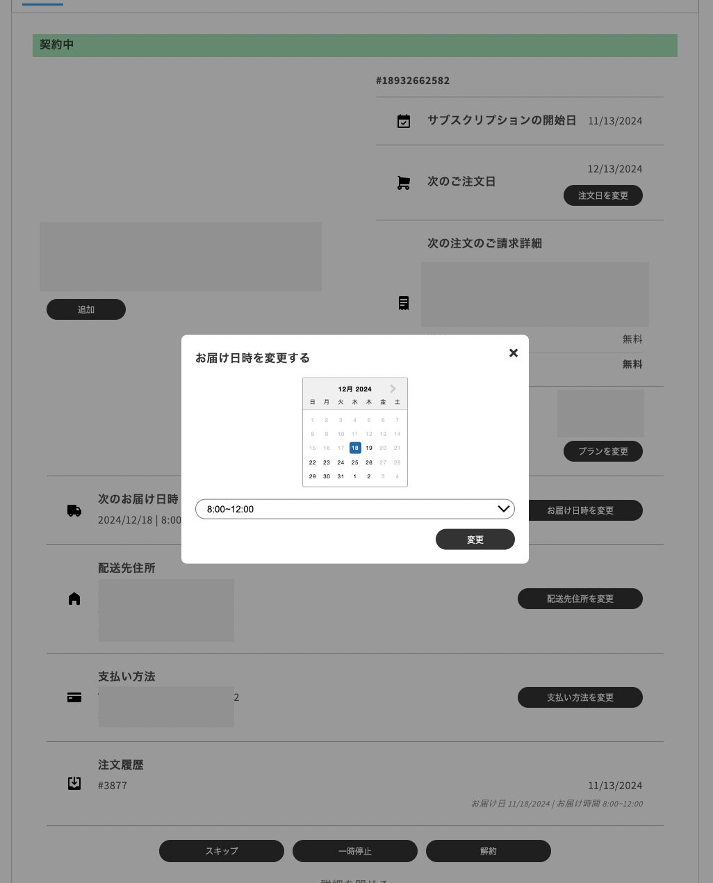 また、お客様アカウントページから次回のお届け日を変更する際も、お届け日として配送休業日は選択できません。