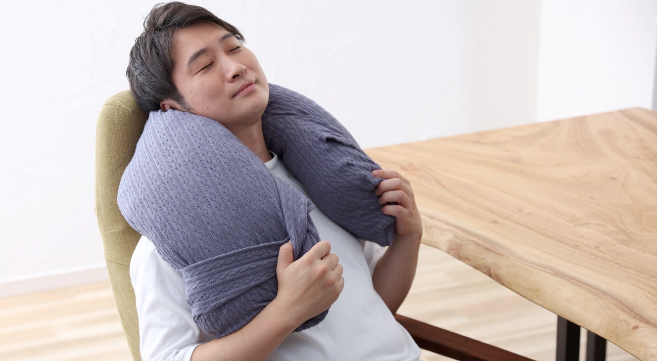 腕の重さを受け止め、肩や背中の緊張をゆるめる多機能クッション。抱き枕としても使用でき、心身ともにリラックスした状態へと誘います。