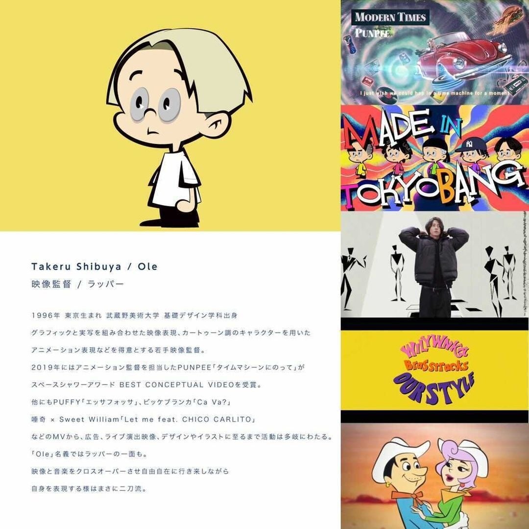 2019年にはアニメーション監督を担当したPUNPEE「タイムマシーンにのって」がスペースシャワーアワード BEST CONCEPTUAL VIDEOを受賞。他にもPUFFY「エッサフォッサ」、ビッケブランカ「Ca Va?」、唾奇 × Sweet William「Let me feat. CHICO CARLITO」などのMVから、広告、ライブ演出映像、デザインやイラストに至るまで活動は多岐にわたる。