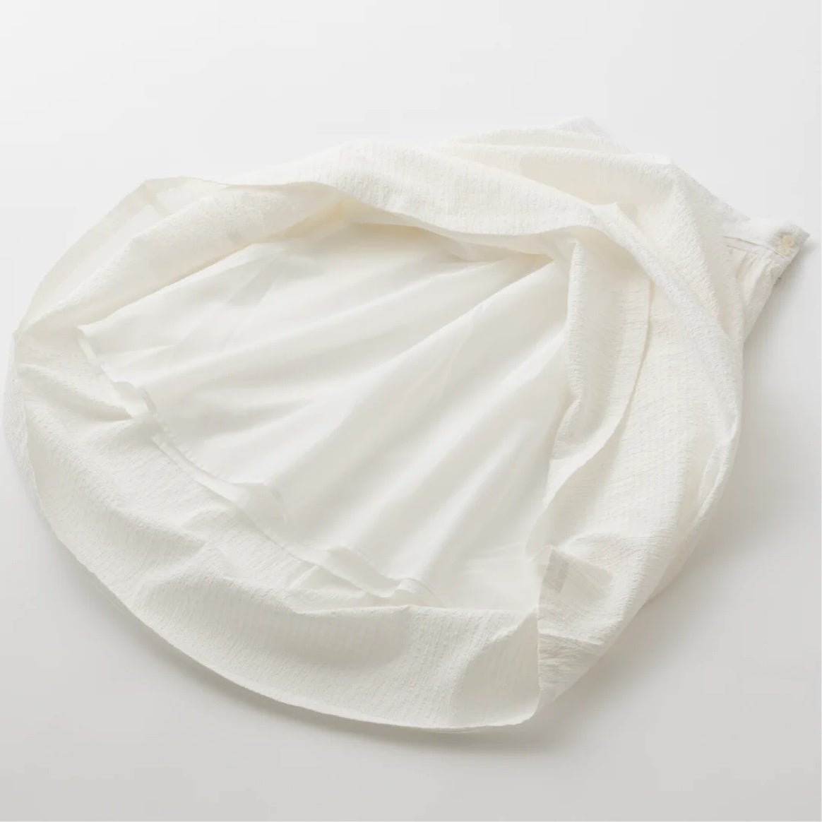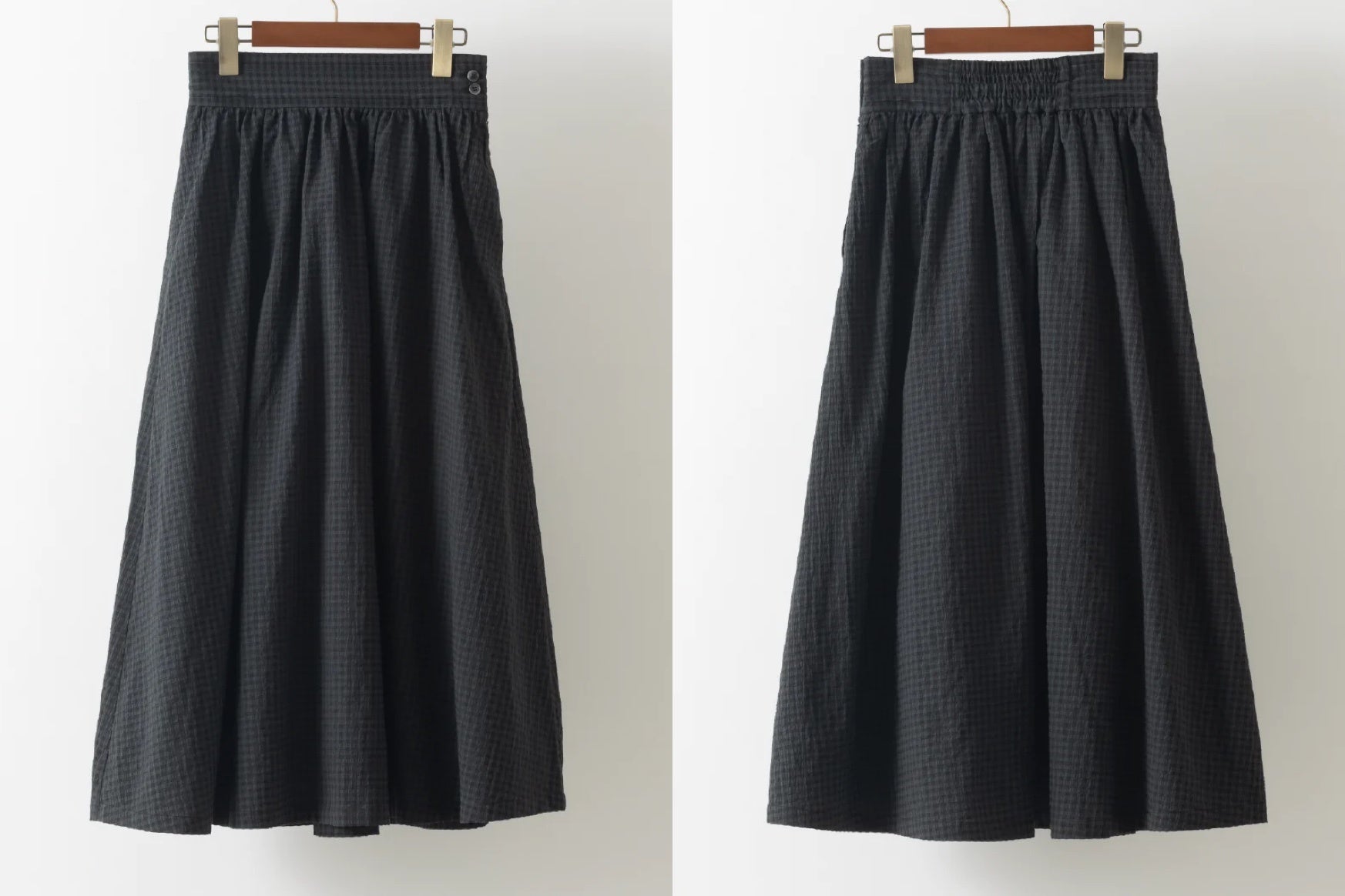 こちらは、シアサッカー素材が季節感を演出してくれるフレアスカート。