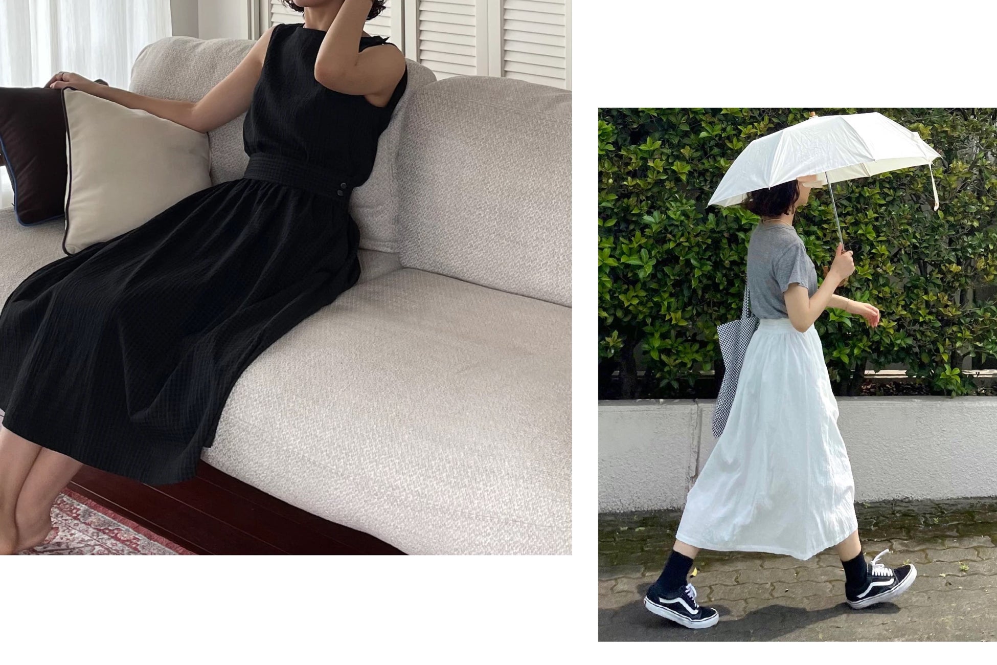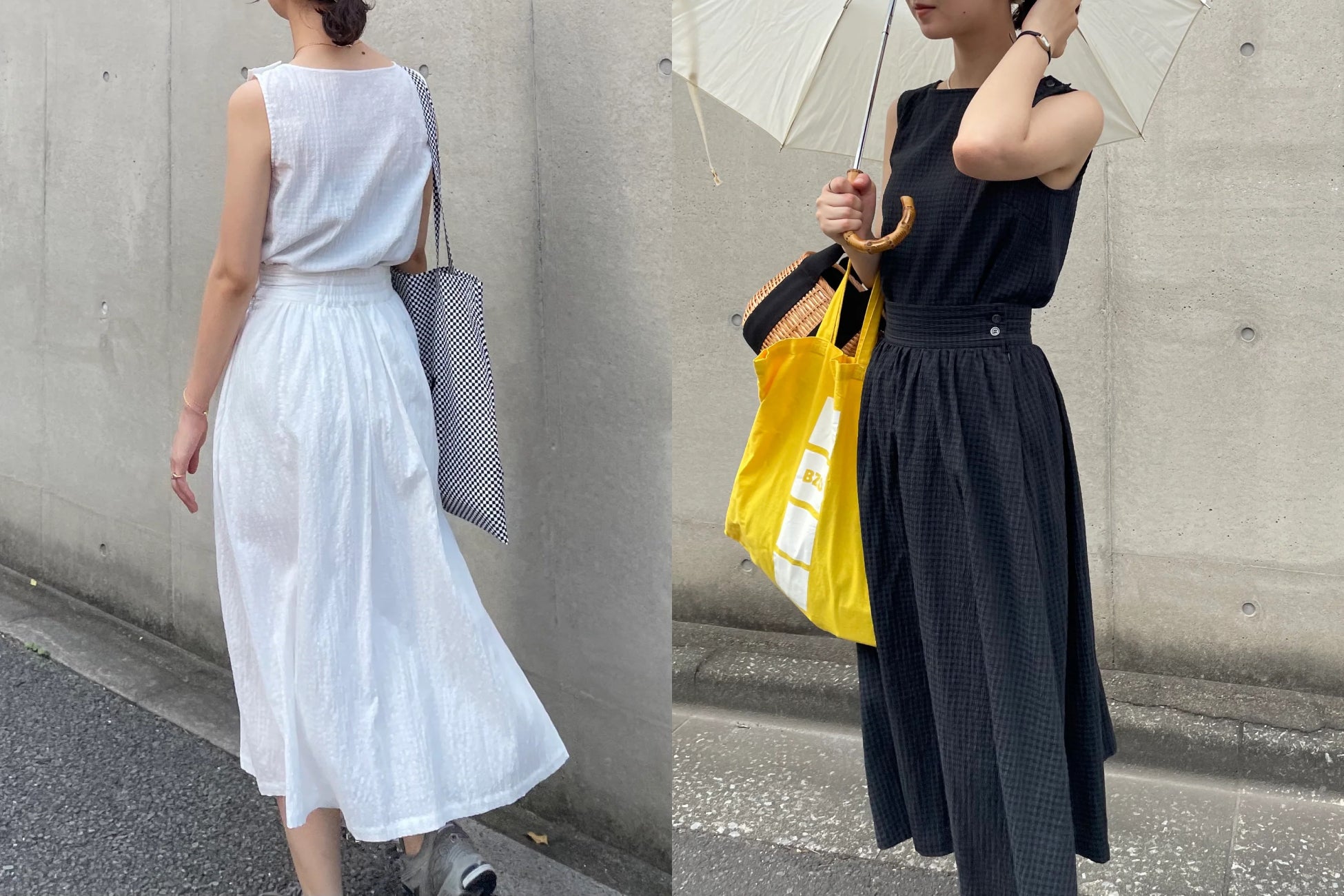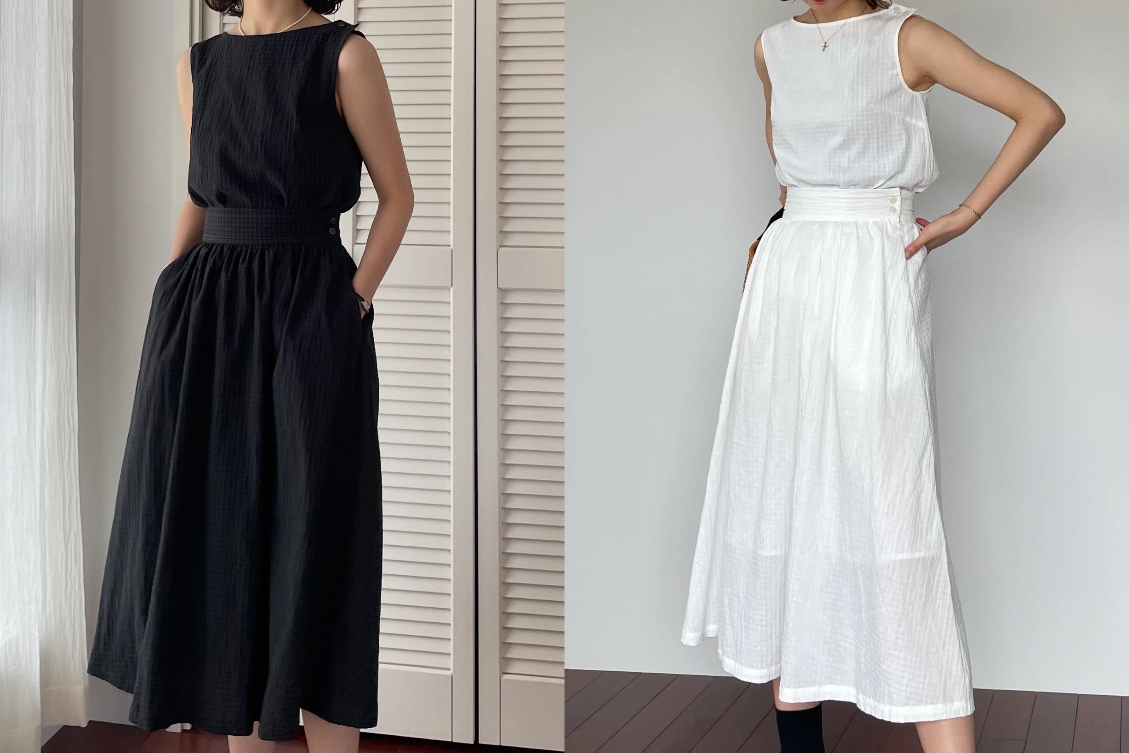 ブラウス、スカートそれぞれ ホワイト、ブラック の2色展開。