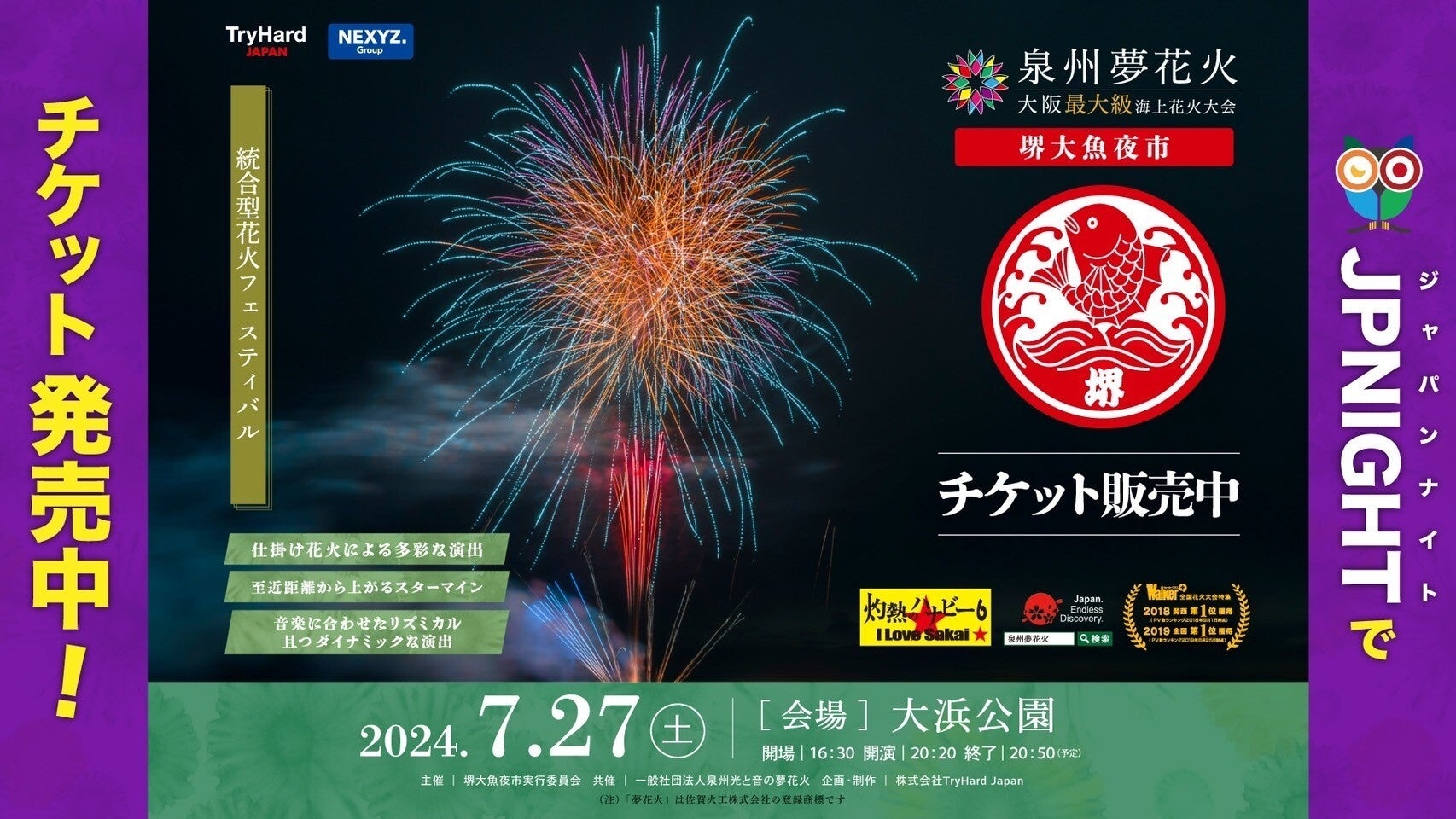 「泉州の観光資源創出による地方創生」をテーマに、地域密着型の統合型花火大会「泉州夢花火」と、大阪府堺市の大浜公園で毎年7月末に行われる「堺大魚夜市(さかいおおうおよいち)」が共催し、大魚夜市のフィナーレを飾る打上花火を「泉州夢花火in堺大魚夜市」とブラッシュアップして開催いたします。