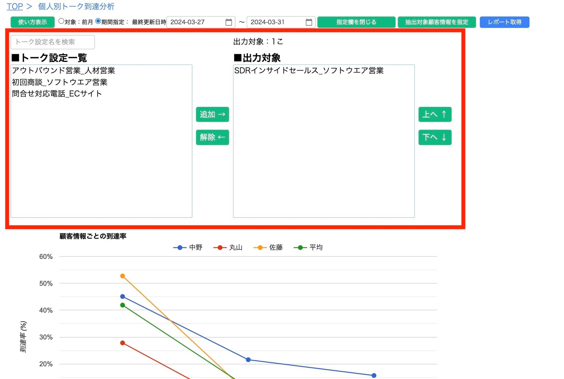 利用しているさまざまなトークスクリプトの種類から分析したいトーク種類を選択します。一つだけ選択も複数選択も可能。