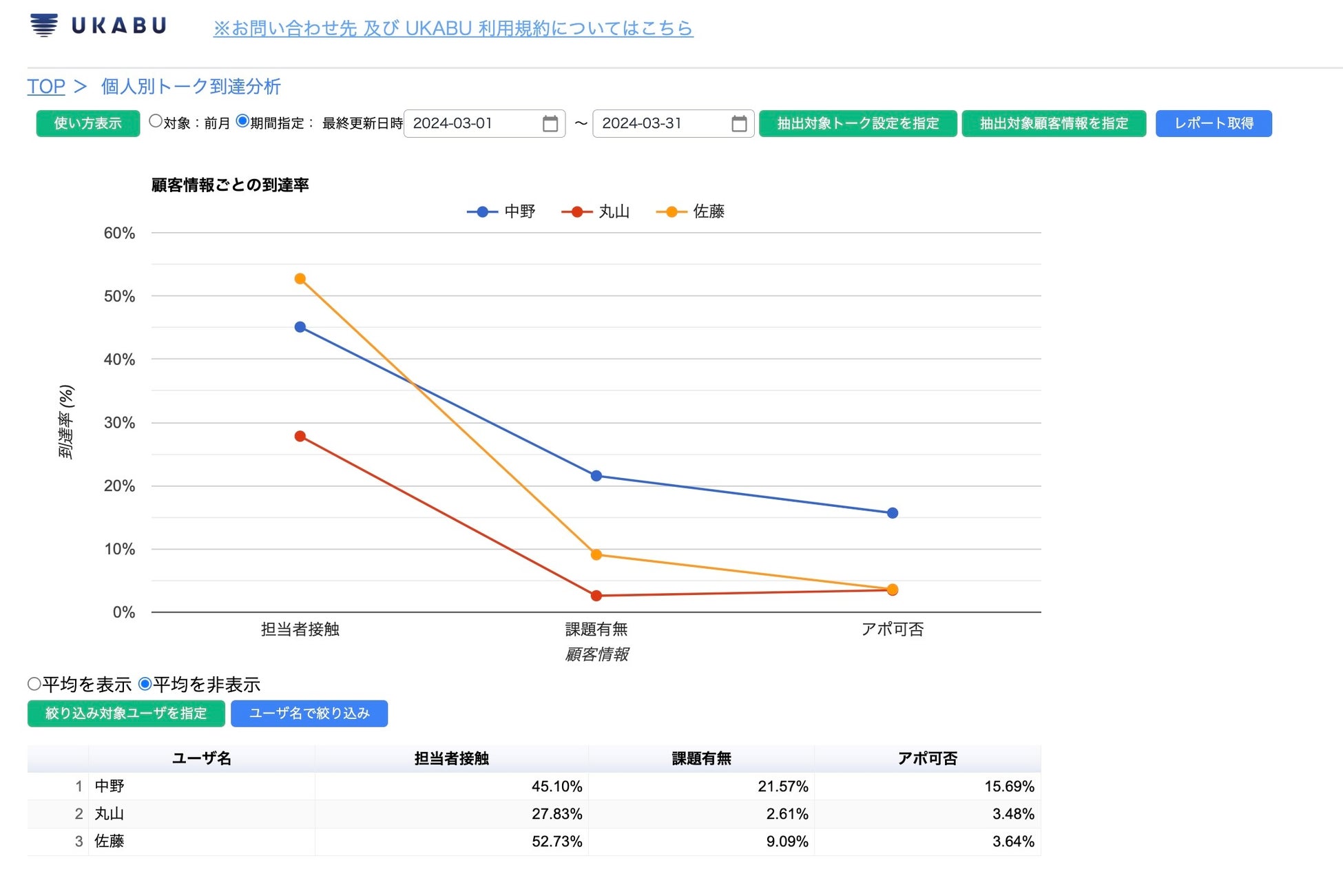 トーク支援ツール「UKABU」が、トーク利用結果からユーザー比較や会話の到達率分析を可能とする「トーク分析レポート機能」リリース!