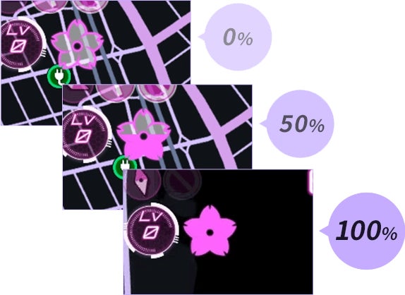 サクラがあなたに対して好意的かどうかを表すインジケーター表示。あなたの運転によって変化します。親密度レベルが上がると新しいコスチュームやアイテムなど、サクラからのステキなプレゼントがありますよ!