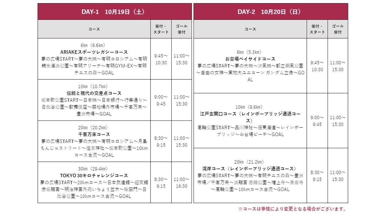 19日(土):6㎞・10㎞・20㎞・30㎞コース
