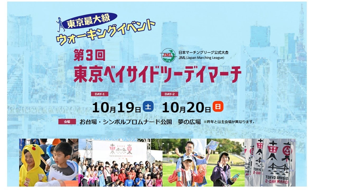 東京都最⼤級のウォーキングイベント『第3回東京ベイサイドツーデイマーチ』2024年10⽉19⽇(⼟)・20⽇(⽇)に、東京お台場:シンボルプロムナード公園 夢の広場を中⼼に開催!