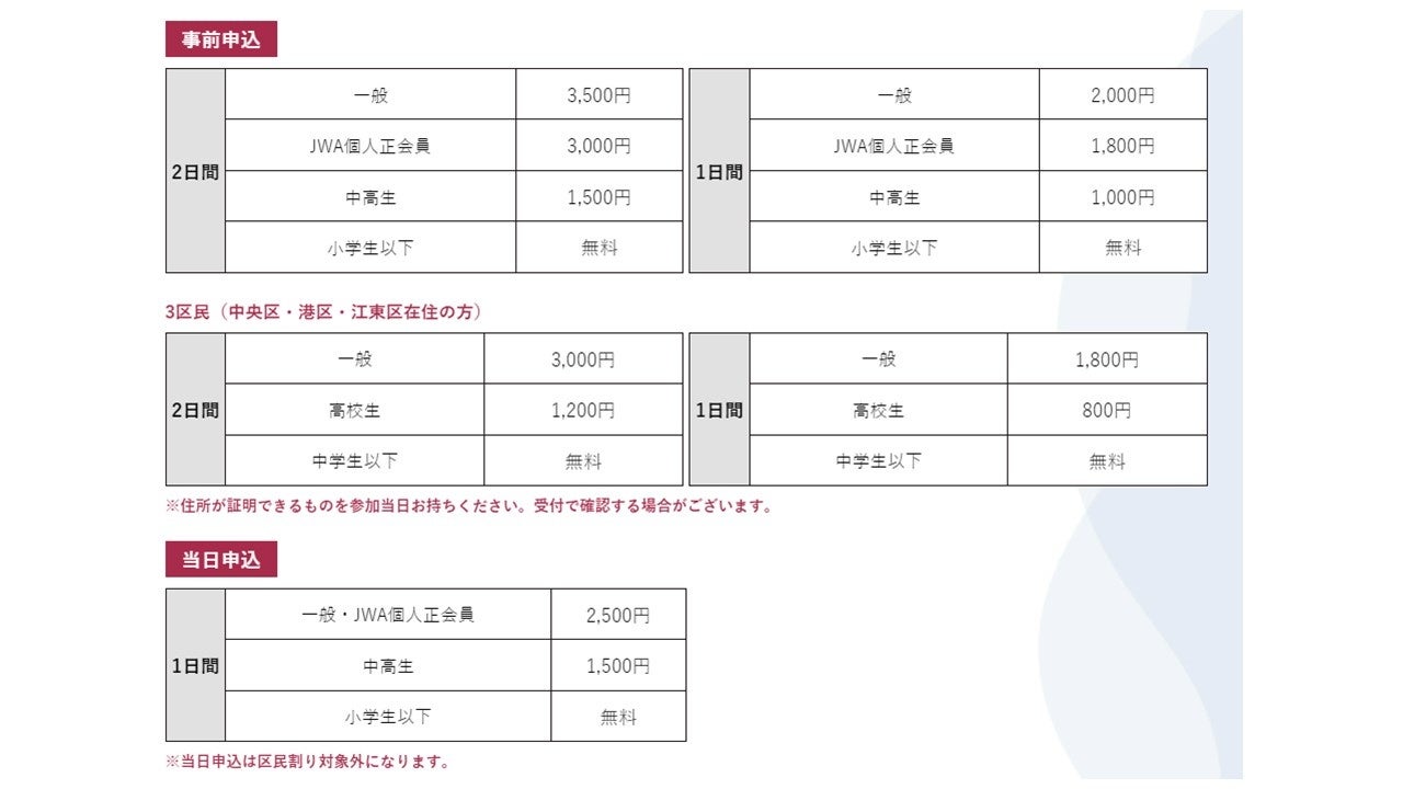 ※当日申込のお支払いはお釣りの無いよう、ご協力をお願いします。