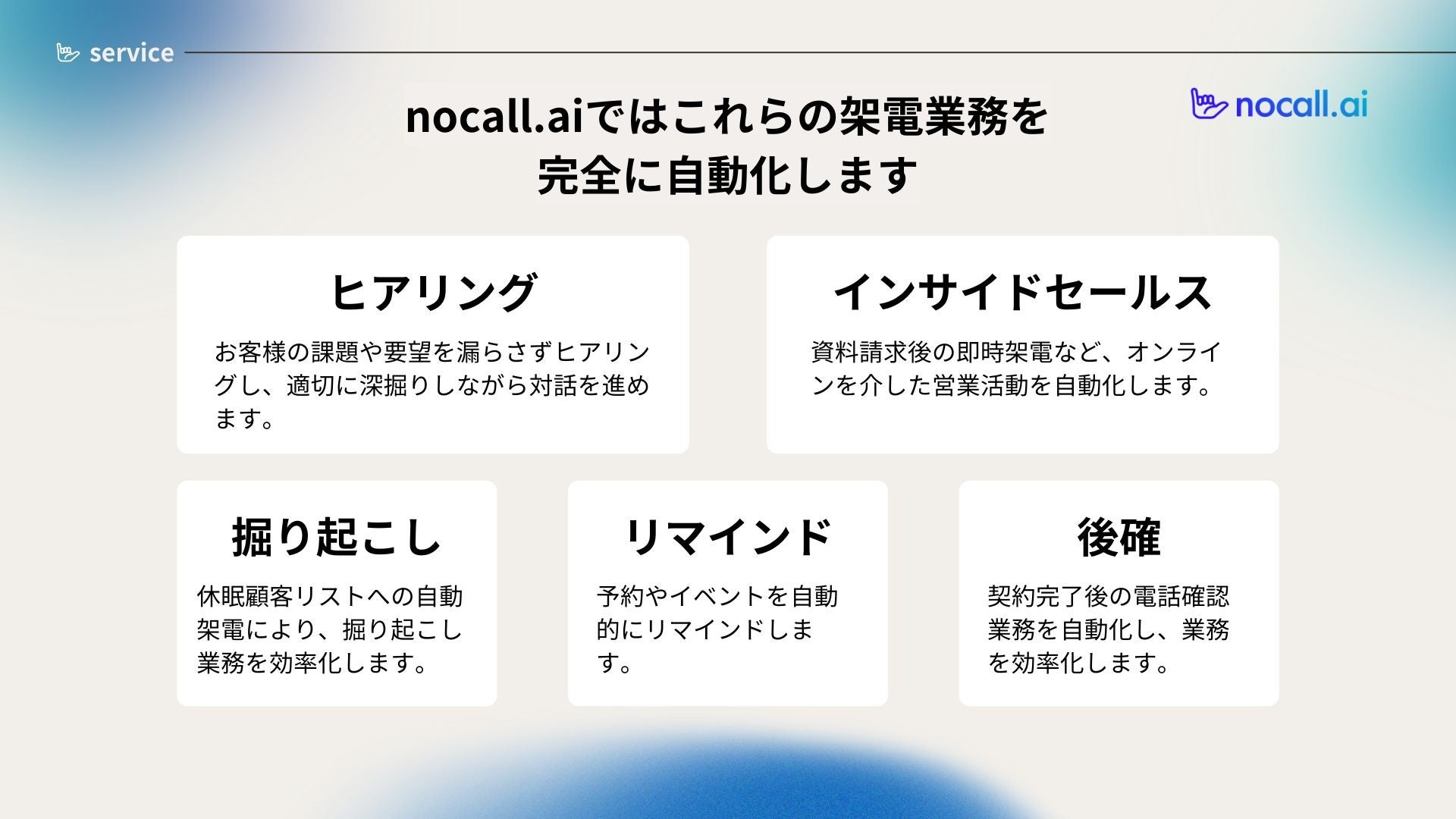 事業内容:生成AI自動架電システム「nocall.ai」の開発・提供