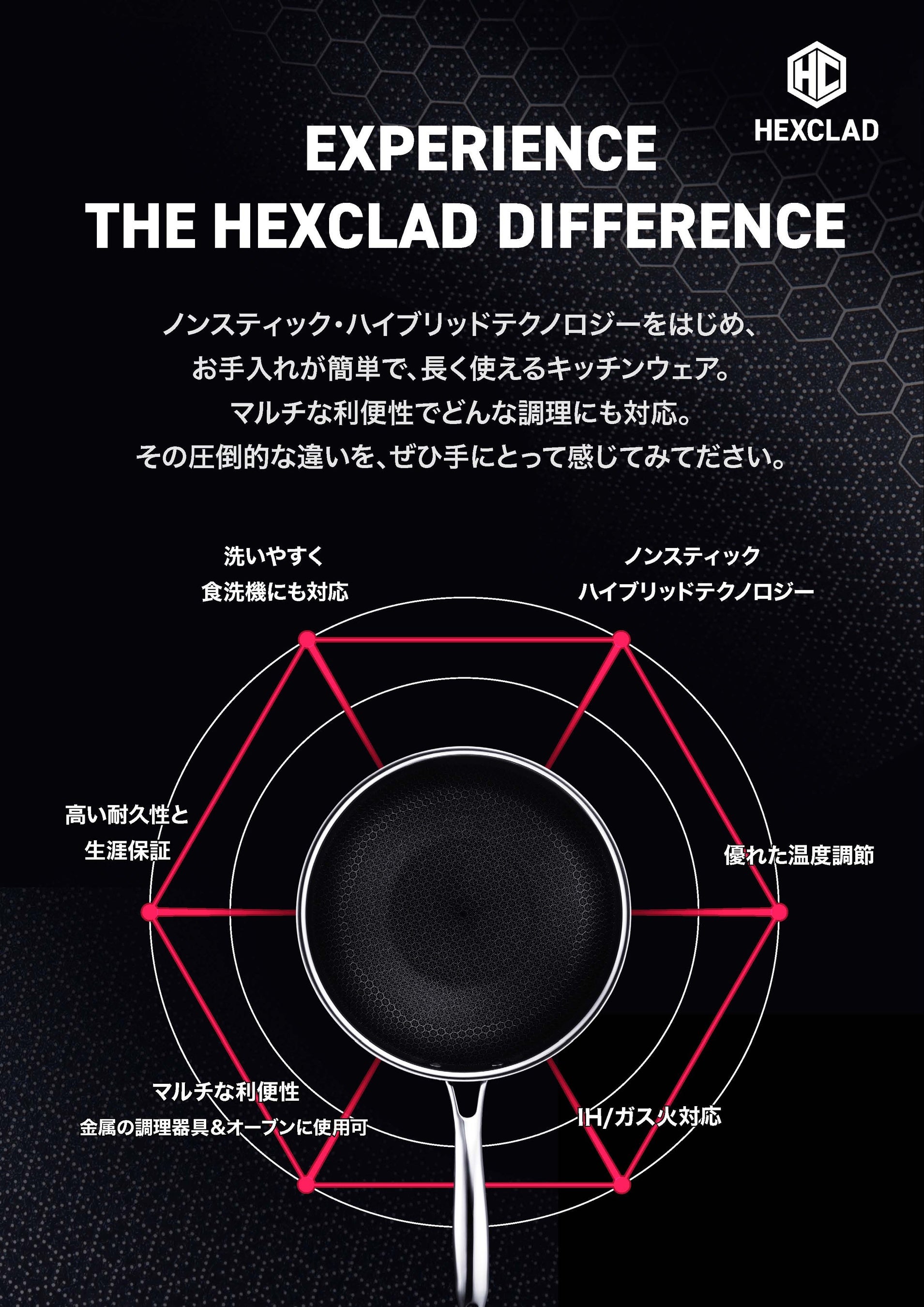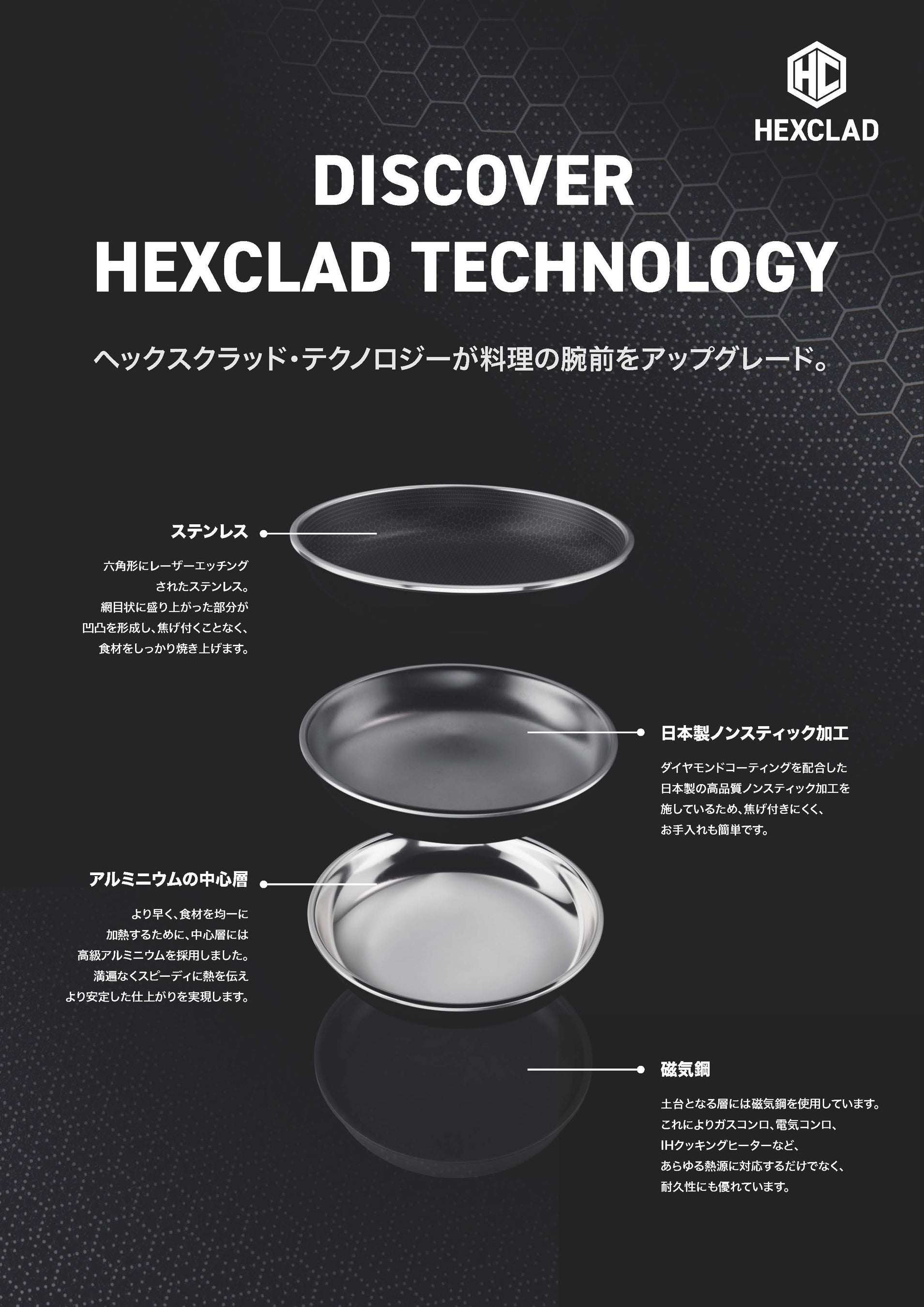 2016年、キッチンウェア業界にイノベーションを起こすブランドとしてヘックスクラッドは誕生しました。ヘックスクラッドの特許取得済みハイブリッドキッチンウェアはステンレスの性能、高い耐久性、そしてノンスティックの利便性を融合させており、ミシュランシェフの基準を満たしながら、ご家庭で必要なお手入れの便利さも兼ね備えたキッチンウェアです。