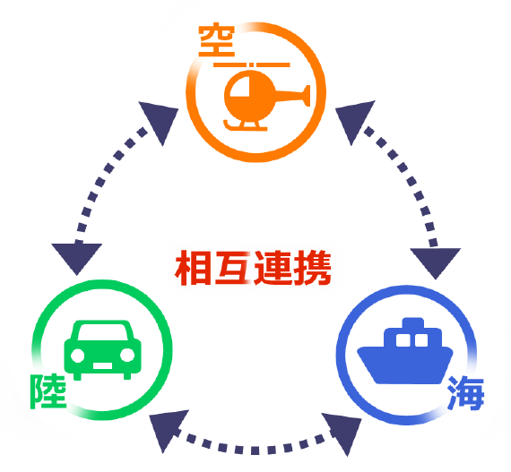 ②実証では、空飛ぶクルマが利用できる水上に設置する浮体式ポートを中心として、陸(自動運転車)、海(自律航行船)、空(空飛ぶクルマ)における複数の移動手段が相互連携した交通サービスを実現するための取組みを行う