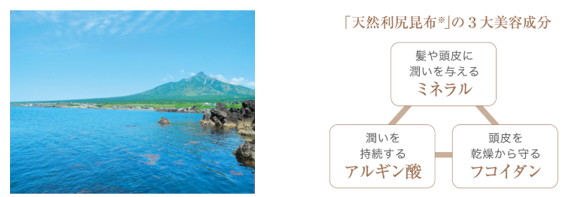 RISHIRIA Furelに欠かせないのは、天然利尻昆布のちからです。北海道利尻島の極寒の海で激しい海流に揉まれ育った天然利尻昆布は、強いヌメリ成分を備えています。ヌメリには、髪に必要な潤いを与え、髪を保護してくれる成分が凝縮されています。