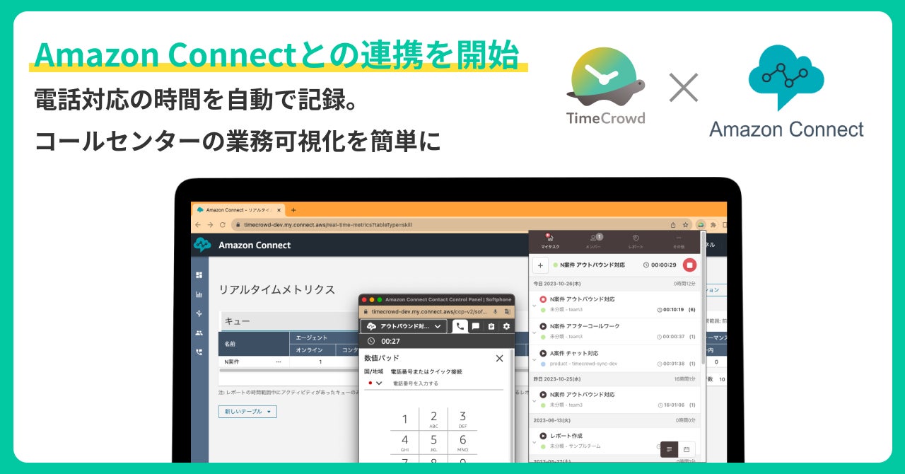 時間管理ツール「TimeCrowd」がクラウドコンタクトセンター「Amazon Connect」との機能連携を開始