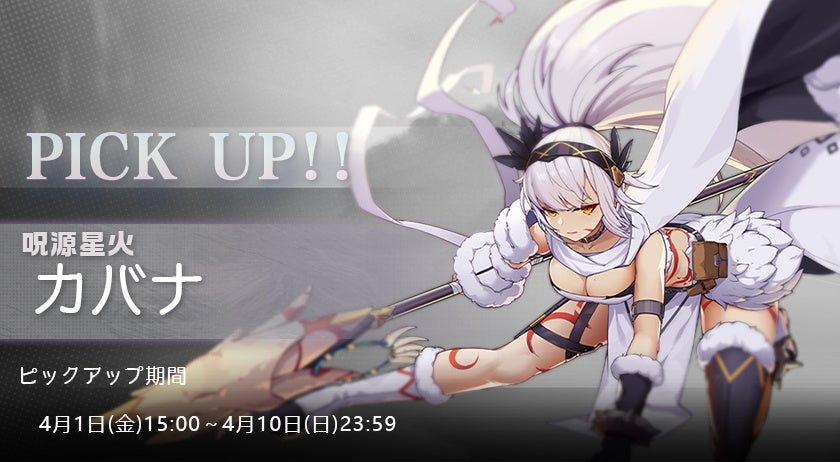 下記の期間中に、呪源星火「カバナ」の人形ピックアップ祈願を開催しております。期間中、眠り人形「カバナ」の出現率がUP!