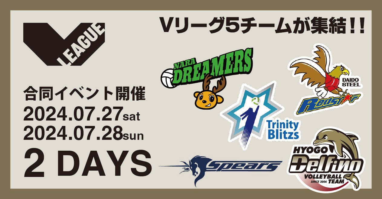 プロバレーボールチームが5チーム集合(大同特殊鋼知多レッドスター、奈良ドリーマーズ、クボタスピアーズ、きんでんトリニティーブリッツ)し、バレーボールの人気拡大、認知向上、そして観戦を楽しめるスポーツ「バレーボール」を目指し、10月から開幕する新Vリーグを観戦してくれるファン拡大を目指し、イベント開催を決意!