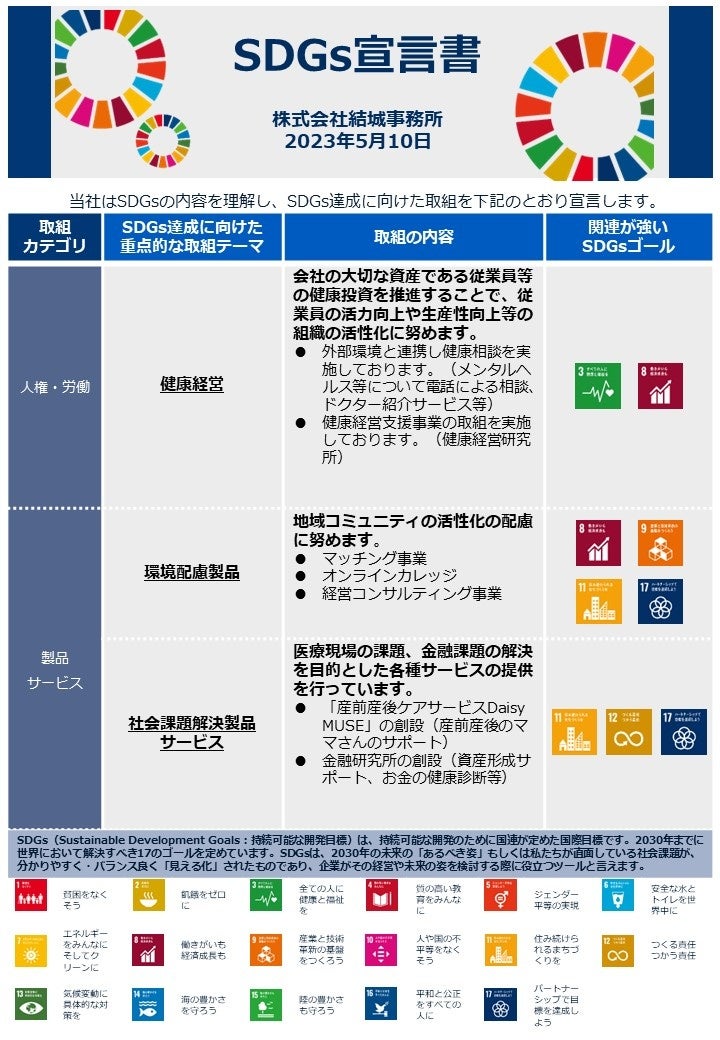 当社はSDGsの内容を理解し、SDGsに向けた取り組みを宣言書のとおり明記いたしました。