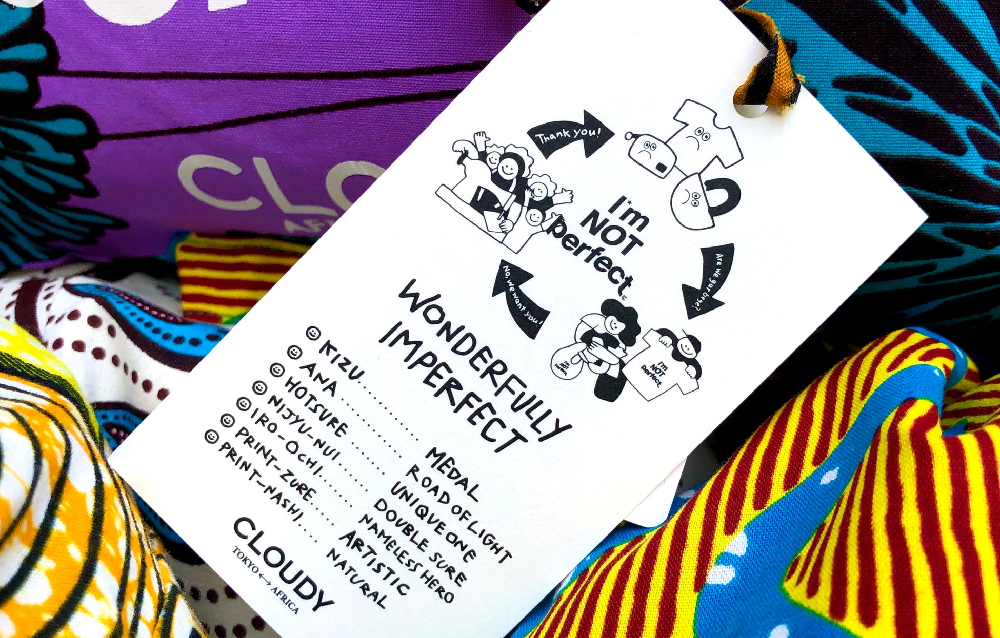 当イベントでは、技術の習得が半ばであるアフリカ・ガーナのCLOUDY自社工場のワーカーによって生産され、様々な理由で「不完全」となっているモノをリデザインし販売します。成長過程にあるモノでも市場で流通させることで、より多くの人々が成長の過程の半ばでも生活をするための収入を得ることができ、技術を習得するチャンスを得られる仕組みを目指します。