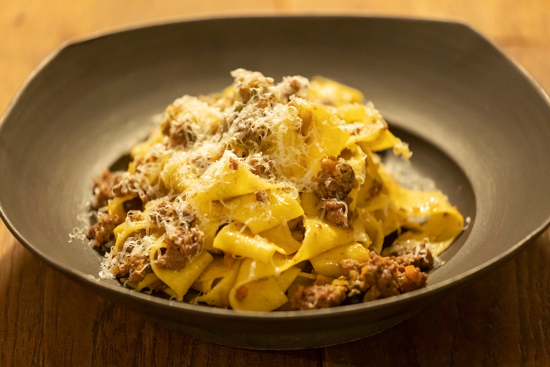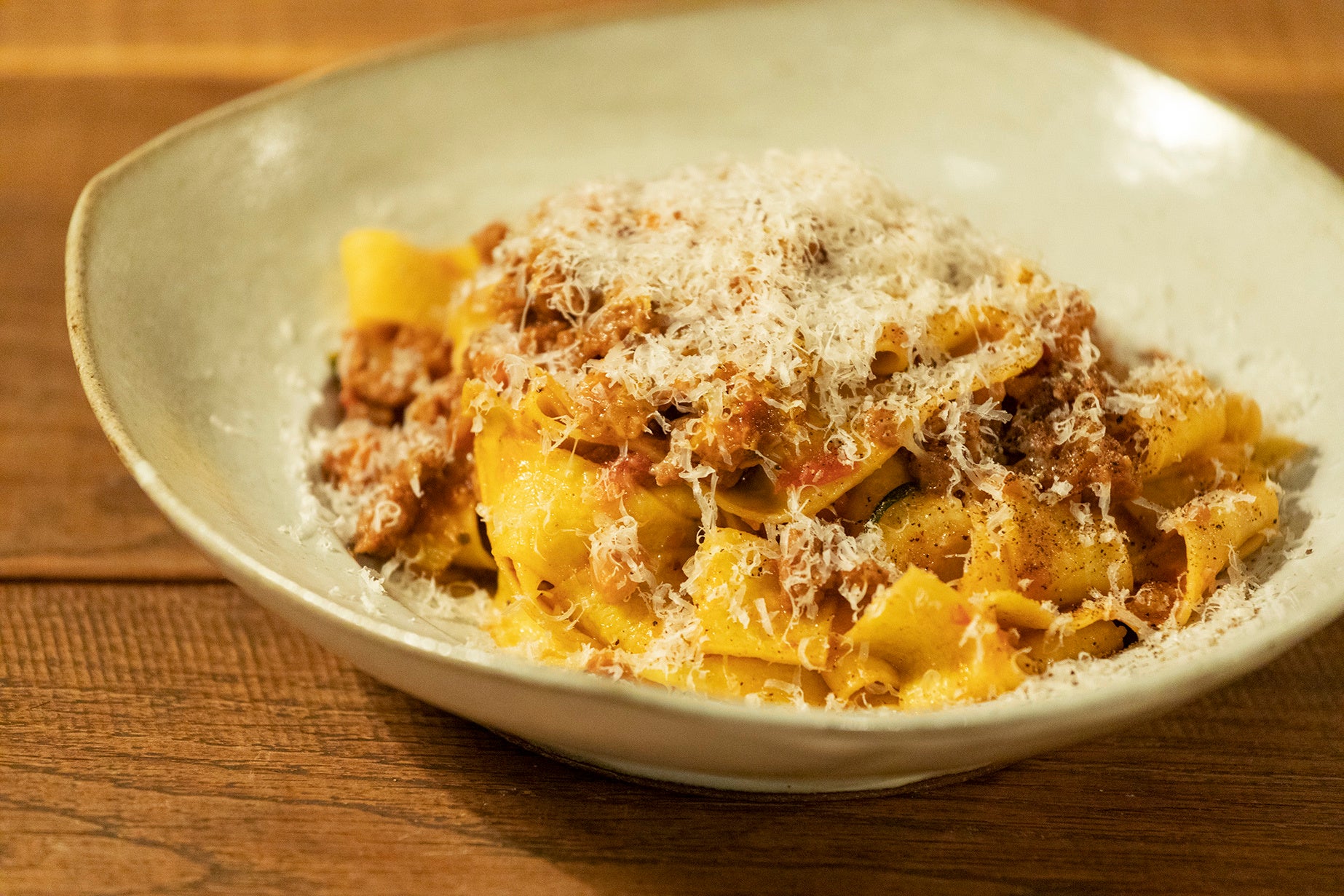 ① ポルチーニとイノシシのラグーソース ブラータチーズつき(2人用)