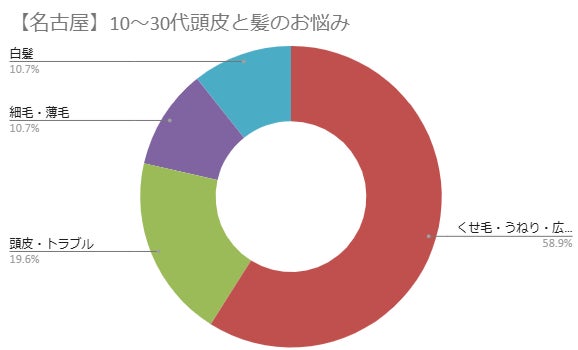 名古屋10-30代は「頭皮トラブル」に悩みがち!「くせ毛・うねり・広がり」の悩みも。【ヘアチェックFaviewお悩み調査】