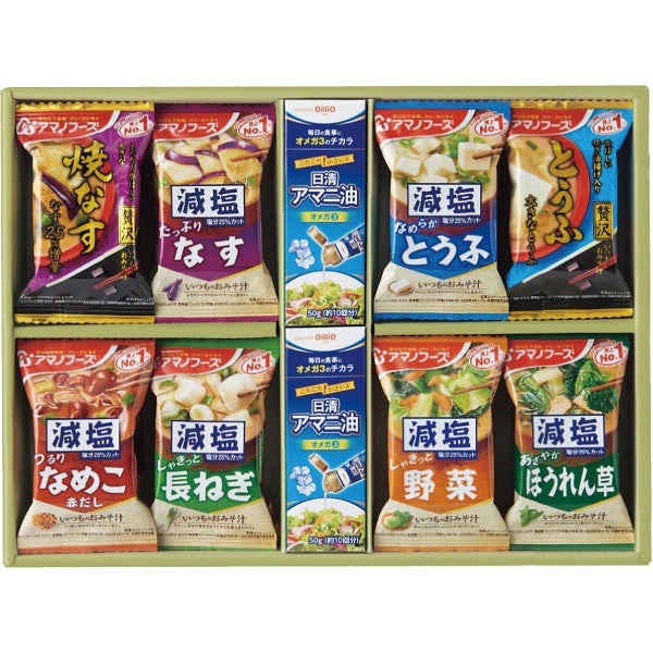 日清オイリオ×アマノフーズ アマニ油とおみそ汁のここから始まる健康習慣ギフト 3,240円(税込)